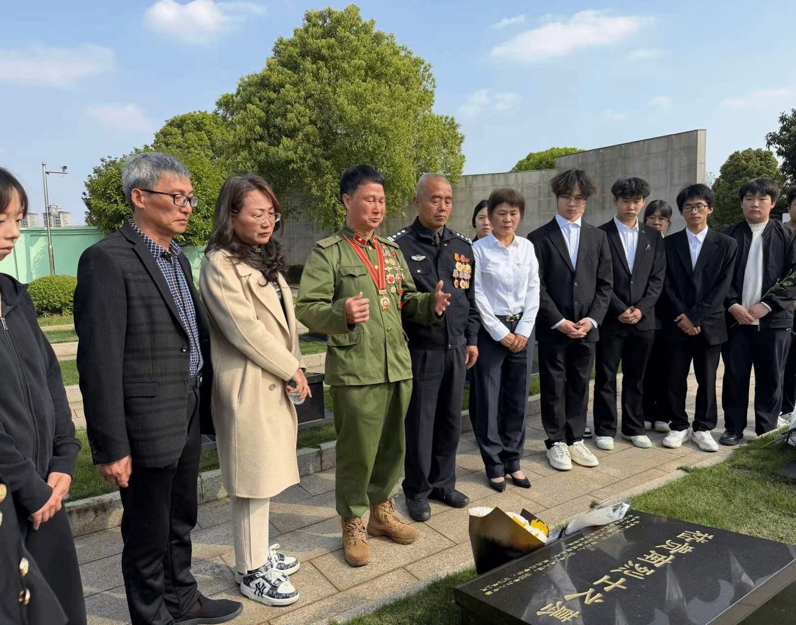 在革命纪念馆内,年近七旬的钟常军老班长缓缓讲述起战友嵇贵南烈士的故事。1979年,两人同乘一列火车奔赴战场,许下“若有一人活着回来,每年为对方扫墓”的生死诺言。嵇贵南在战斗中英勇牺牲,荣立个人二等功,而钟常军则用41年的坚守践行着当年的约定。他手指轻抚展柜中的历史照片,声音虽低沉却坚定有力,将那段浴血奋战的岁月娓娓道来,令在场青年无不动容。随后,师生们一同参观纪念馆,驻足凝视一张张泛黄的历史图片、一件件承载烽火记忆的实物展陈。从革命先辈的英勇事迹中,大家深刻感悟到信仰的力量与奉献精神的厚重。