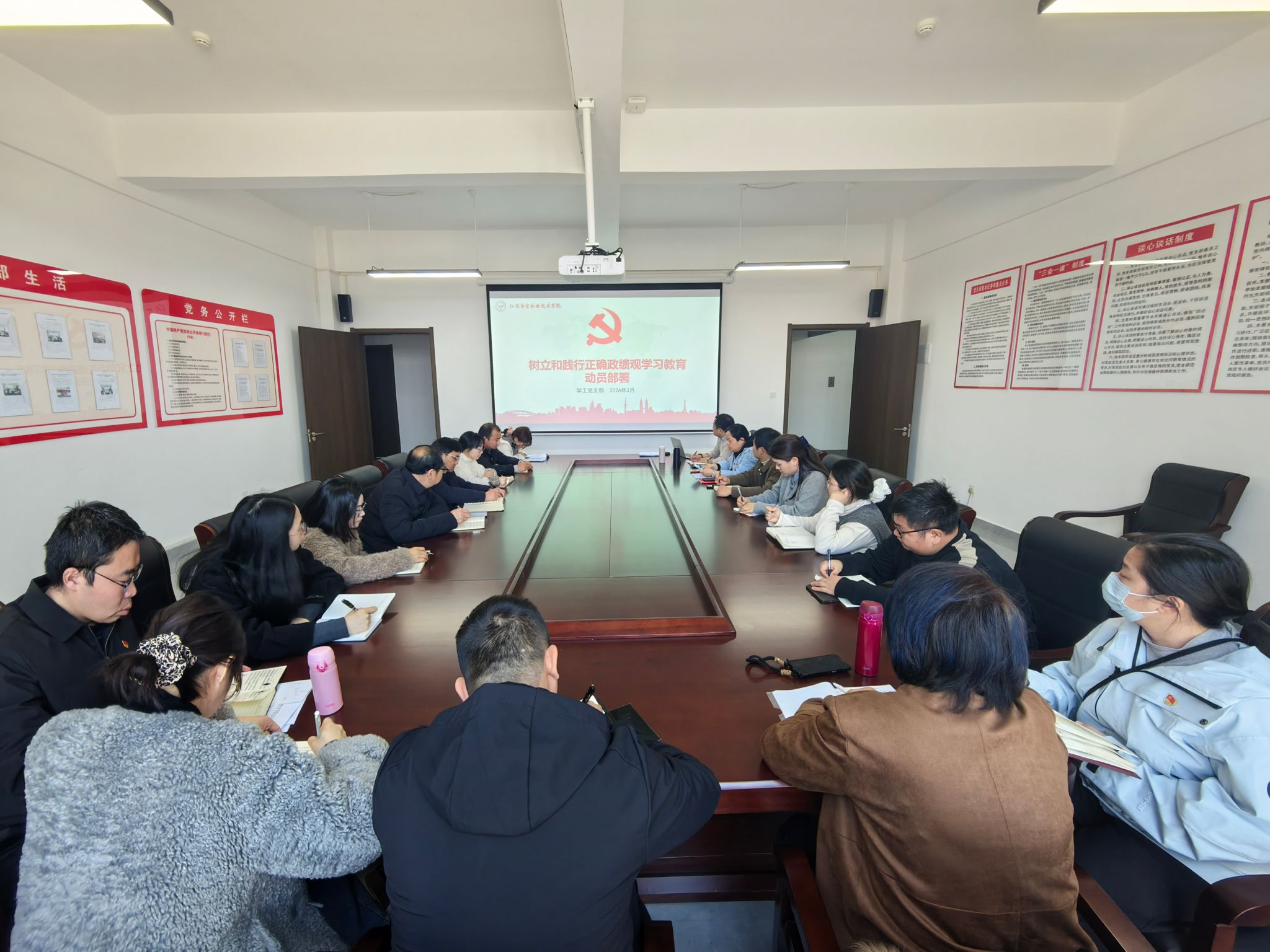 为深入学习贯彻上级工作要求,切实加强党员思想政治教育,引导全体党员牢固树立和践行正确政绩观,3月12日12:30,学工党支部在行政楼333室召开专题学习教育动员部署会。