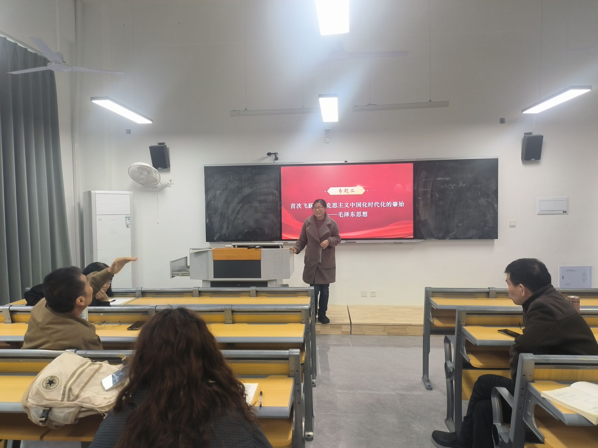 为深入推进《毛泽东思想和中国特色社会主义理论体系概论》课程教学提质增效,精准把握专题教学核心要点,3月24日,毛概教研室在二号楼 105 教室开展集体备课活动。本次备课聚焦课程“专题二:首次飞跃——马克思主义中国化时代化的肇始”部分,由袁春芗老师主讲,与会教师充分交流、集思广益,共同打磨高质量思政课堂。