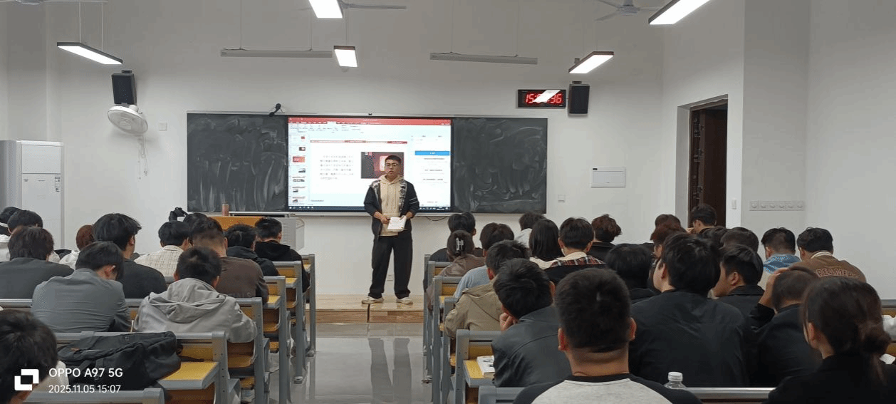 课堂上,孙伟涛老师以清晰的教学逻辑展开授课。他围绕党的全面领导是中国特色社会主义最本质的特征这一核心论点,从历史逻辑、理论逻辑和实践逻辑三个维度,系统阐释了坚持党的全面领导的必然性与重要性。授课过程中,孙老师结合新时代以来党引领国家发展的重大成就、航空航天领域的突破等鲜活案例,将“两个确立”的决定性意义、“两个维护”的核心要求等理论要点融入其中,通过案例分析、课堂提问等互动形式,引导学生思考党的领导如何贯穿于国家建设、行业发展和个人成长的各个方面,有效调动了学生的课堂参与积极性。潘莹璐书记专注投入,不时对授课中的亮点内容点头赞许,同时认真记录教学环节设计、师生互动细节及理论阐释的关键要点,细致观察学生的课堂反应与知识接受情况。