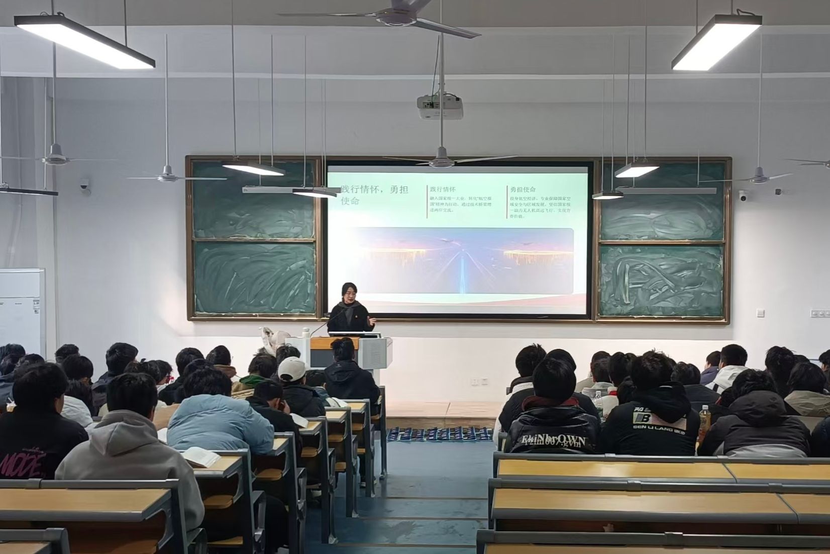 蔡金梅老师则从专业教学角度出发,补充讲解了无人机技术研发、应用过程中体现的工匠精神与创新精神,将专业技能培养与爱国主义教育相融合。她通过具体的技术案例,让同学们认识到,作为无人机专业的青年学子,掌握过硬的专业本领,就是为国家科技发展、为祖国统一事业贡献力量的具体体现。