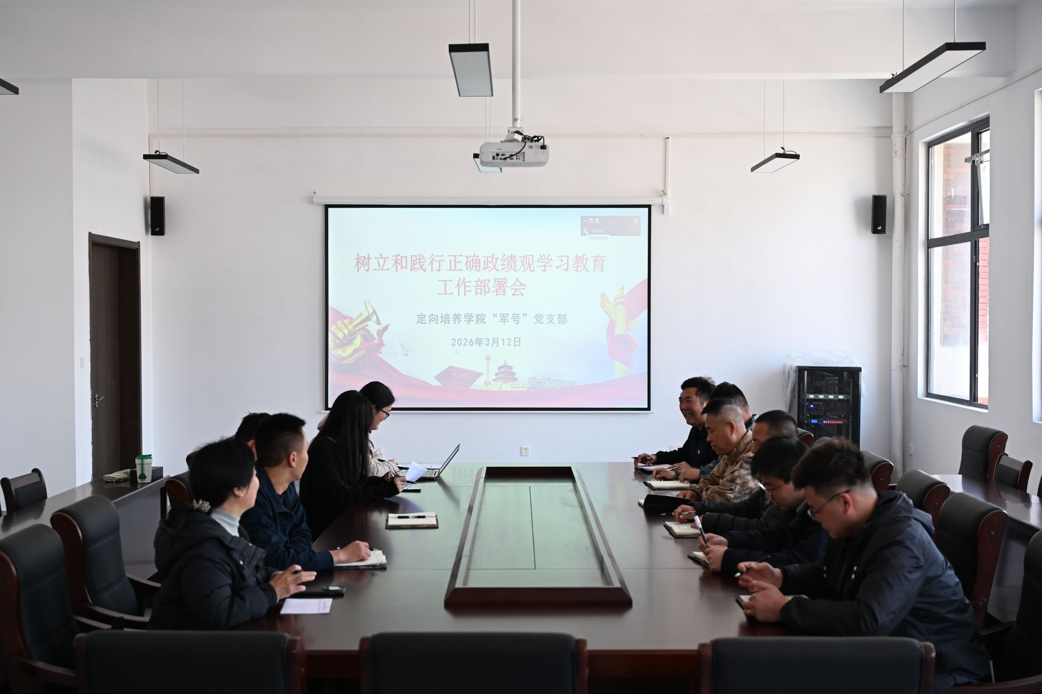 为加强基层党的政治建设、筑牢党员思想根基,2026年3月12日,定向培养学院“军号”党支部召开树立和践行正确政绩观学习教育动员部署会。会议在学院504会议室召开,党支部书记毛建勇线上主持会议并作动员部署。