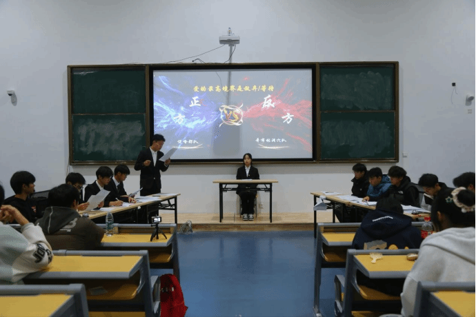 为促进学生思辨能力与情感认知的深度融合,2025年11月27日18:00 - 19:00,由我校心理协会与演讲与口才协会联合举办的首届“新语杯”辩论赛决赛,于3号公教楼110教室隆重举行。当晚,200名学生积极参与。