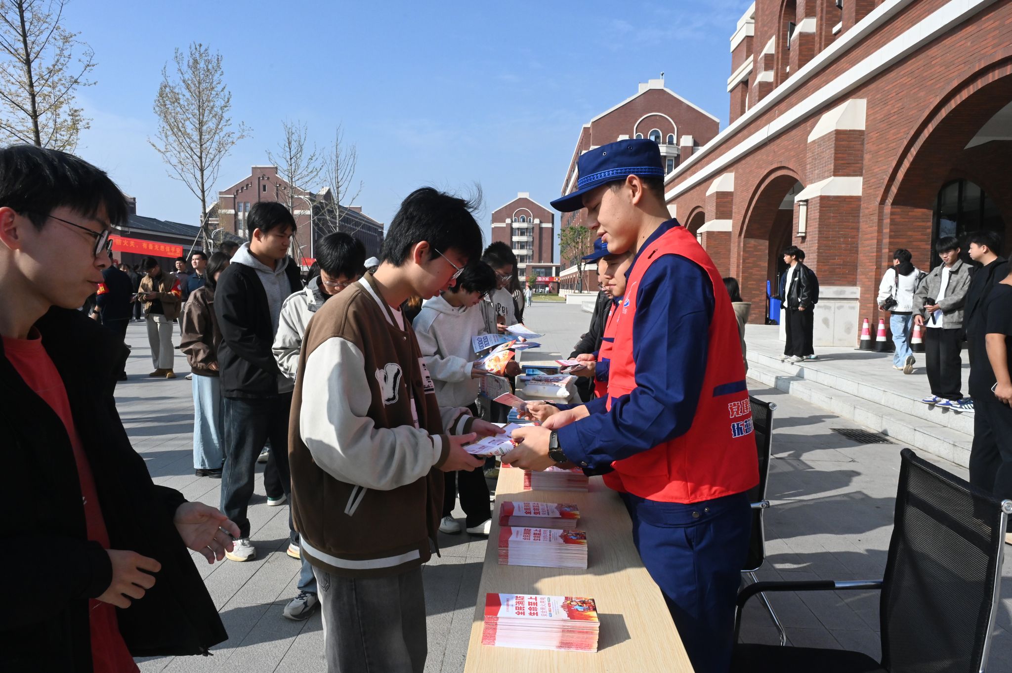 为深入贯彻《关于扎实做好 2025 年全省消防宣传月活动的通知》文件要求,切实普及师生员工的消防知识,强化安全防范意识,提升应急处置技能。11月6日上午,学校协调东临新区消防大队,在第一食堂广场举行了“全民消防 生命至上”为主题的消防宣传月启动仪式活动。东临新区经济发展局(招商局)丁智、东临新区消防大队严松、学校校长助理兼保卫处处长邵巍出席活动。