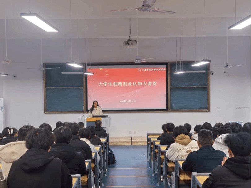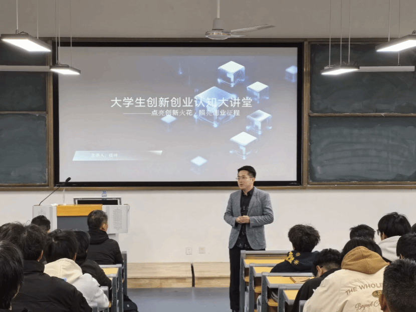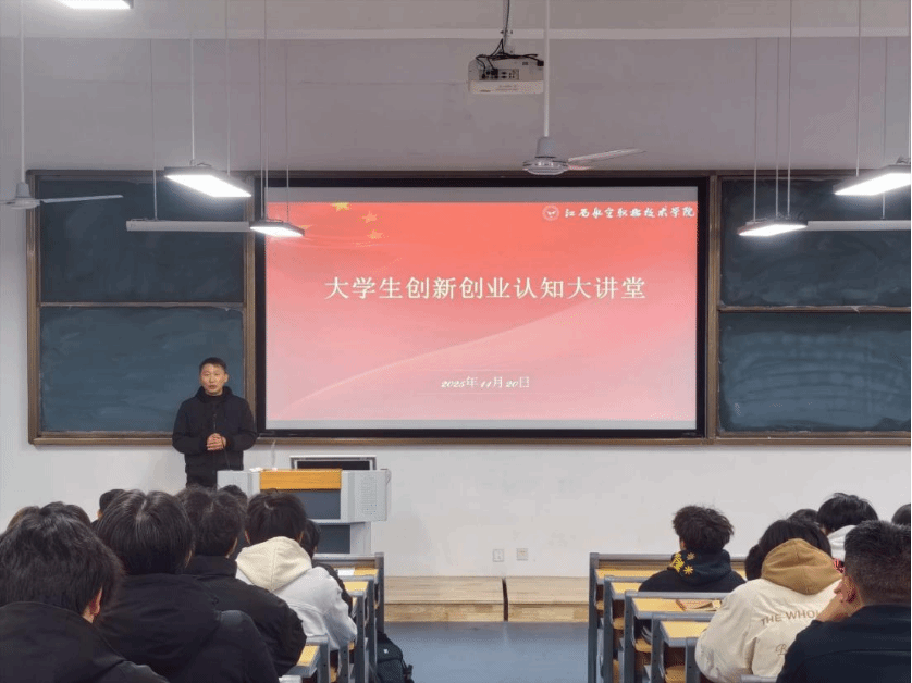 为进一步提升我校学生创新意识与创业能力,营造良好的创新创业教育氛围,2025年11月20日晚,在公教楼1-109创新创业中心举办“大学生创新创业认知大讲堂”。本次大讲堂主题为“点燃创新火花,照亮创业征程”,旨在引导学生深入理解创新创业的核心理念,掌握实践路径,积极投身创新创业时代大潮。双创中心副主任叶常绿,马克思主义学院教师党支部书记任国平,航空智能装备学院副院长朱庆贺出席本次活动。