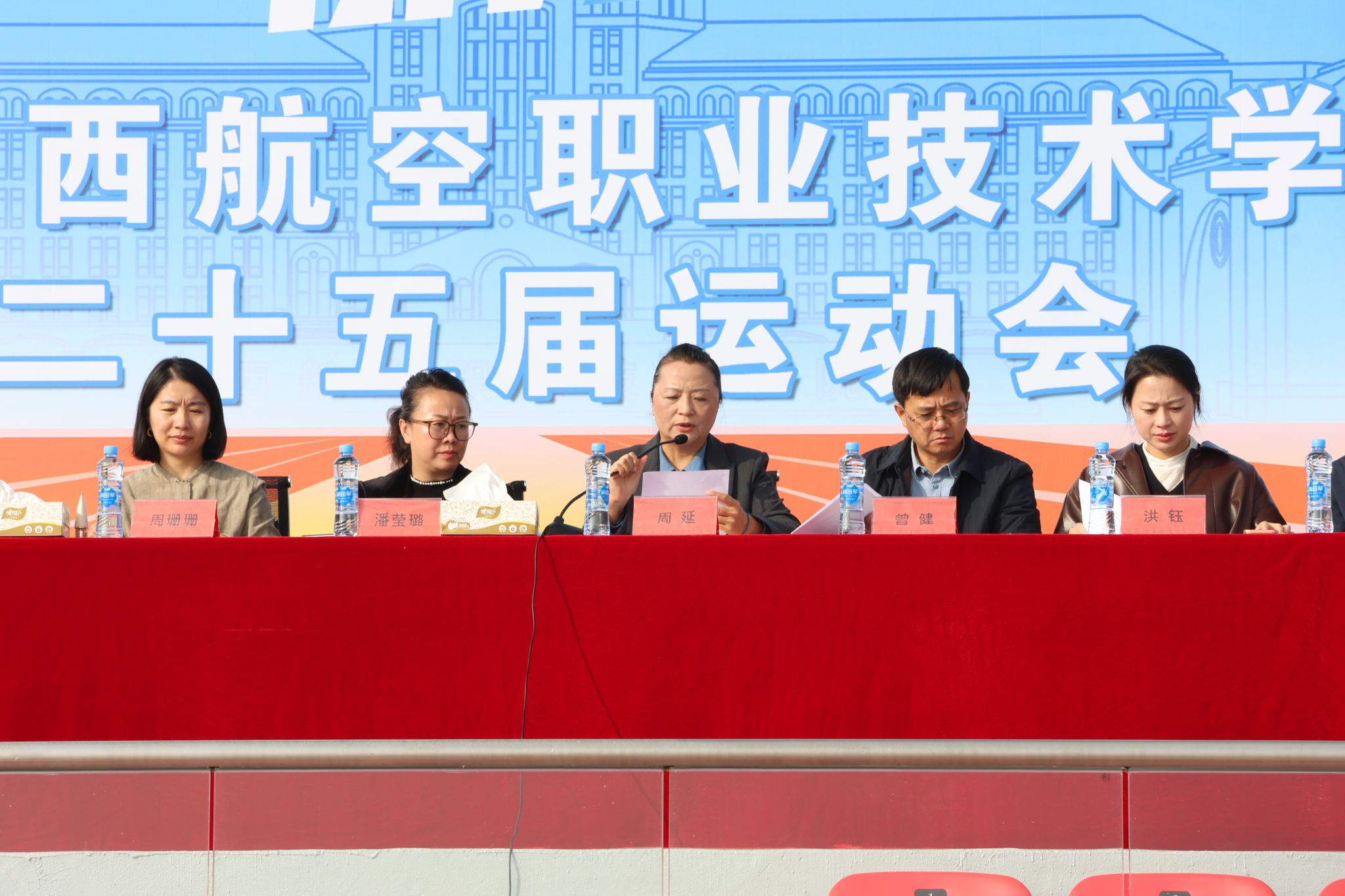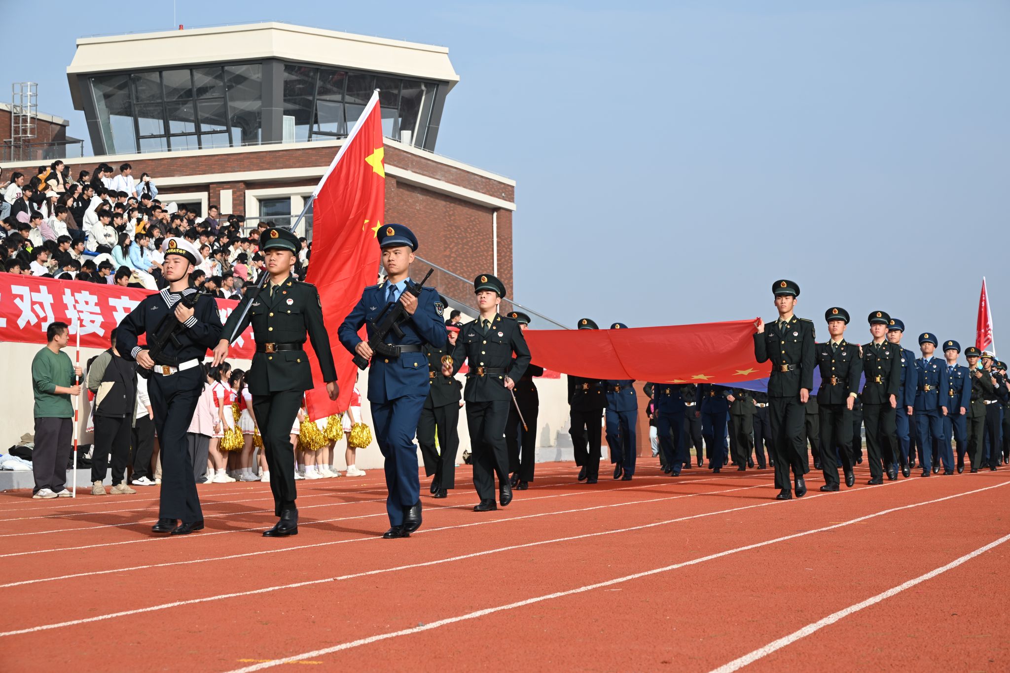 为弘扬拼搏进取的体育精神,凝聚师生向心力,2025年11月6日,江西航空职业技术学院于抚州校区蓝天体育场隆重举办第二十五届运动会开幕式。江西航空职业技术学院党委书记、督导专员潘莹璐,执行校长周延,常务副校长周珊珊,副校长徐有田、洪钰、万春鹏、陈国俊,党委组织部部长曾健,校长助理李燕出席,定向培养学院的119名运动员代表、41名国旗护卫队队员以及41名威风锣鼓队队员参加。