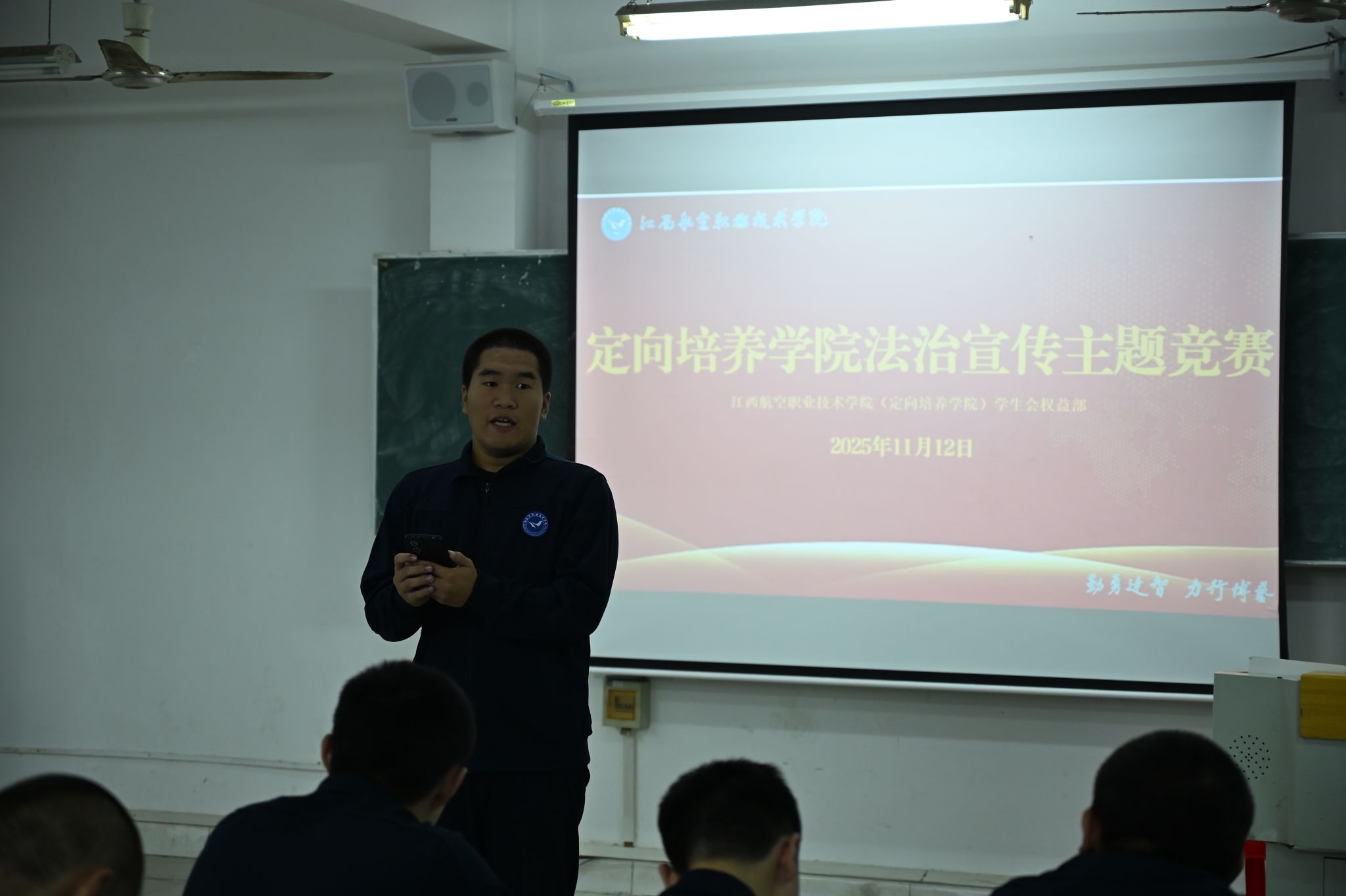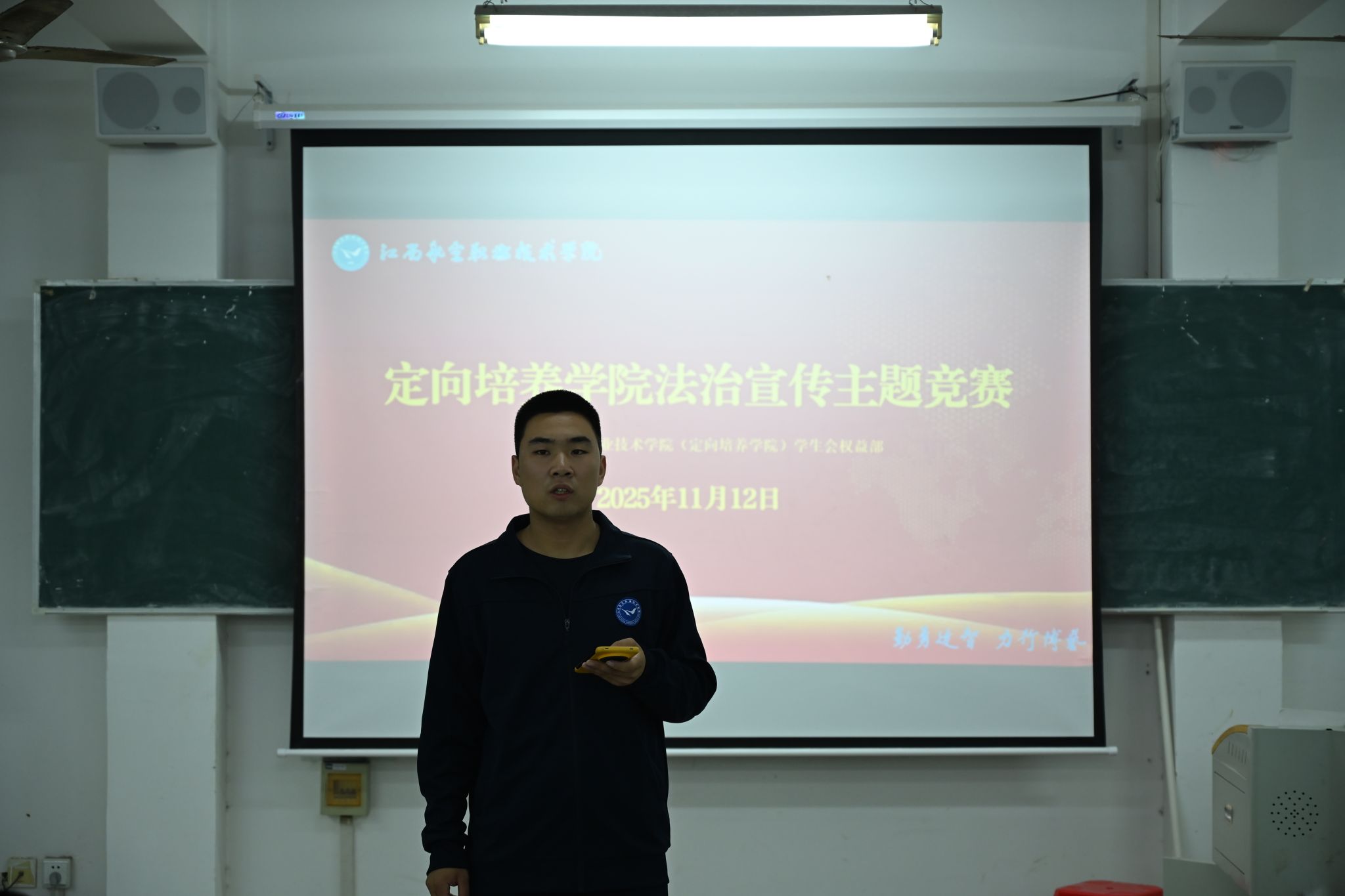 为进一步提升定向培养军士的法治素养、筑牢法治信仰,2025年11月12日,定向培养学院于昌南校区教学楼C5-8成功举办“弘扬法治精神,筑牢法治信仰”法治宣传主题演讲比赛。