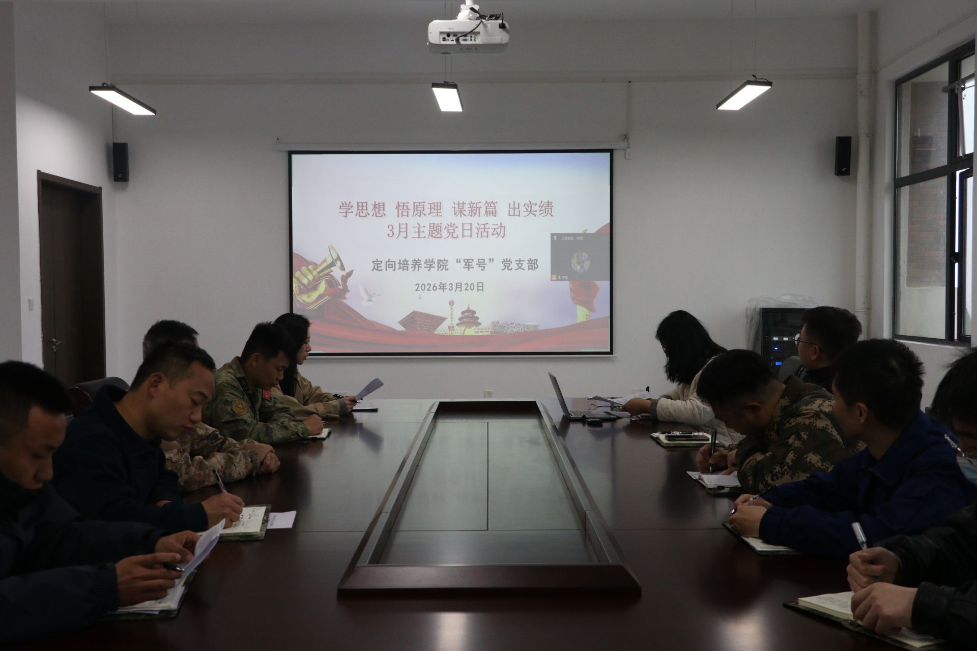 为深化理论武装、强化党性修养,2025年3月20日,定向培养学院党支部在会议室开展“学思想悟原理谋新篇出实绩”主题党日活动。由支部副书记袁奕同志主持,全体党员参加会议。