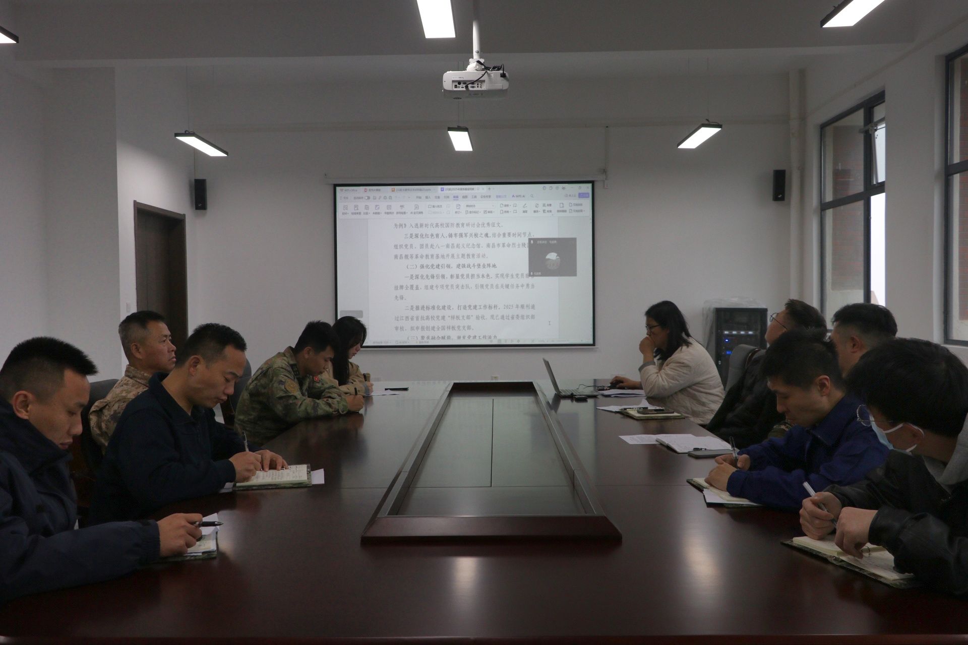 在交流研讨环节,党员教师刘华、俞钰煌结合定向培养军士工作实际,分享学习心得。两位同志紧扣全面从严治党要求与正确政绩观内涵,立足课程教学、学生培养、师德师风建设等工作实际,畅谈理论学习感悟,探讨将理论精神融入育人实践的路径方法,表态将坚决杜绝形式主义,以务实作风践行党员教师的责任担当。现场交流氛围浓厚,党员们相互启发、凝聚共识,进一步坚定了“强党性、守初心、育桃李”的育人信念。