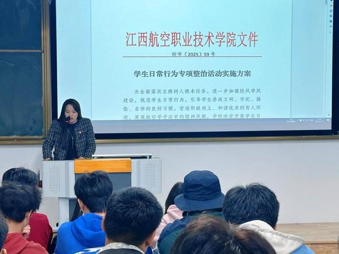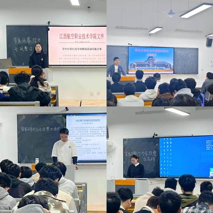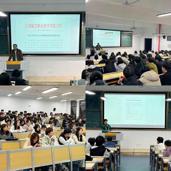 航空电子与信息学院党支部牵头彭雪副书记强调,各班级要高度重视,压实责任,确保整治落到实处。团学组织配合:分团委书记张溪就文明督导队组建与巡查安排作具体布置。各班辅导员也积极在各班开展主题班会,动员全体同学积极参与整治,共同营造文明校园。
