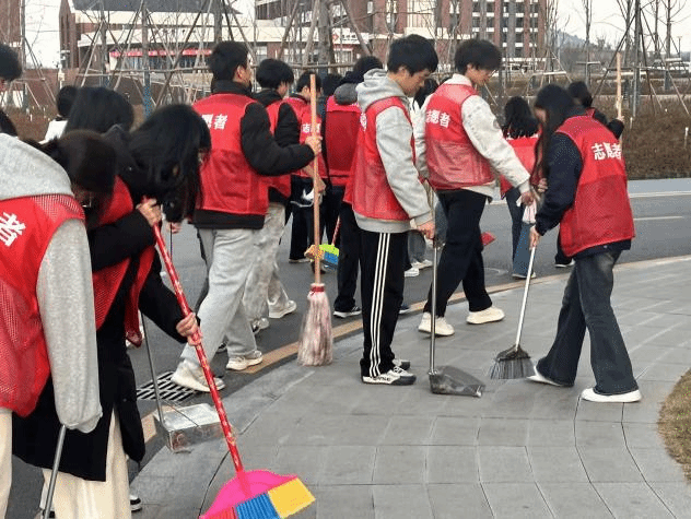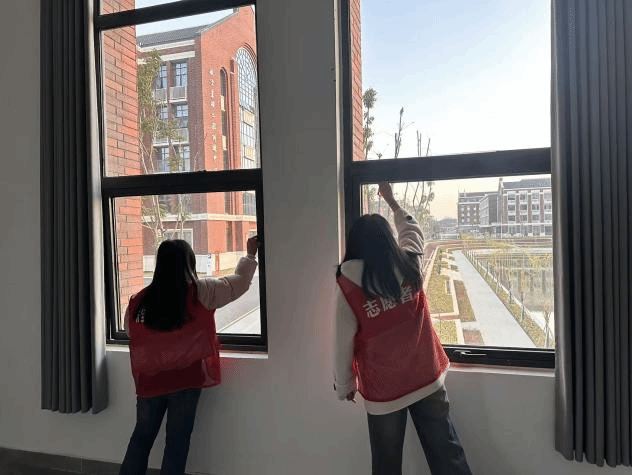 活动中,志愿者们身着红色志愿马甲、手持劳动工具,分组推进清扫工作:在室内重点对航电楼走廊、楼梯间进行深度清洁,手持扫帚、拓跋细致清理地面浮沉与角落杂物,同时擦拭墙面展示板、门窗把手等区域。