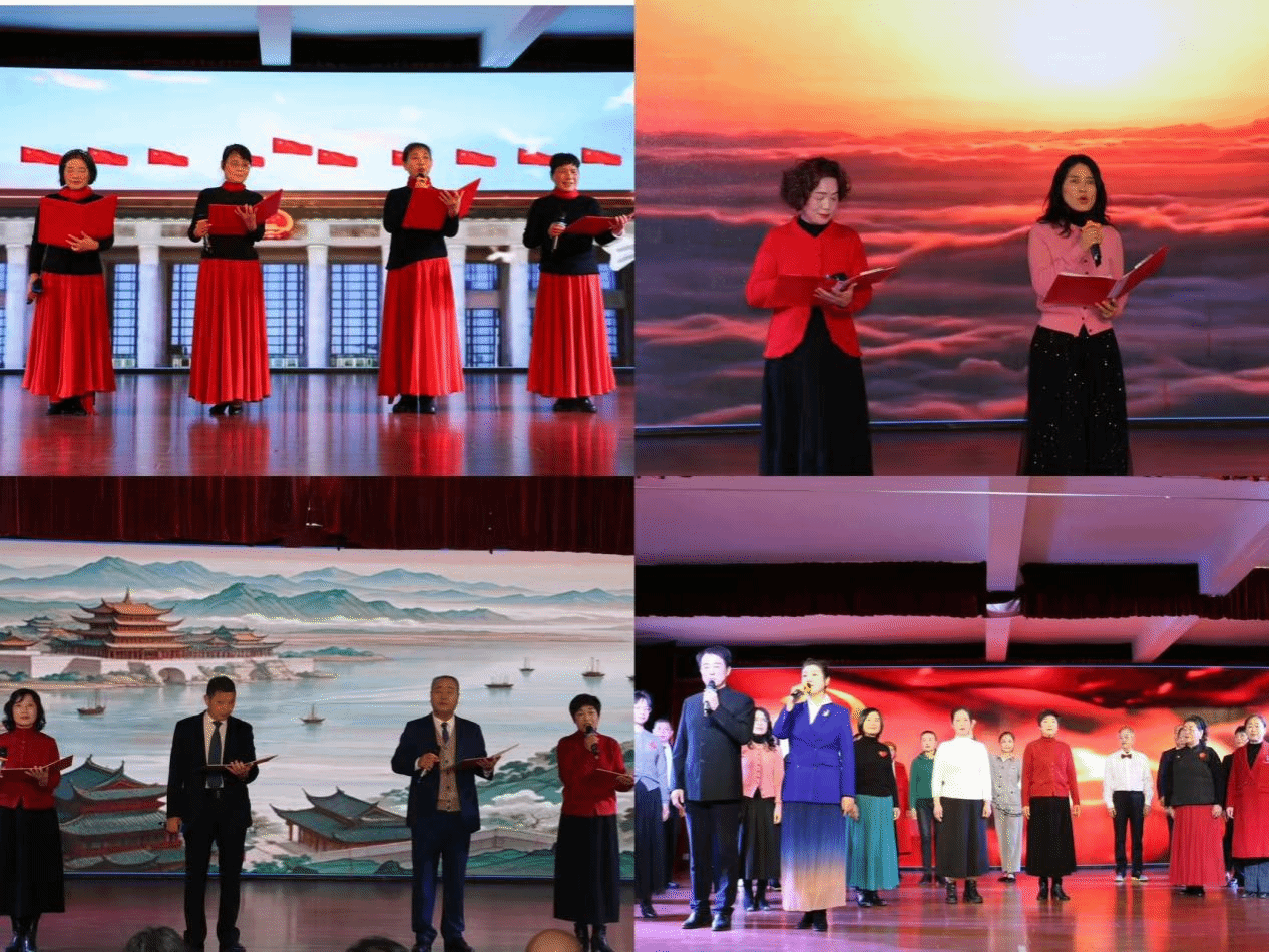 下午14:00,朗诵会正式拉开帷幕。16个精彩节目依次登场,形式涵盖朗诵、情景剧、歌曲等,全方位展现党的二十大精神的丰富内涵。老干部们身着整洁服饰,以饱含深情的语调诵读经典篇章,字里行间流露着对党的忠诚与对祖国的热爱,岁月沉淀的初心令人动容;青年学子则以昂扬姿态演绎时代新作,用清澈有力的声音传递青春理想。我院学生带来的压轴节目《梦想照亮中国》将活动推向高潮,同学们与老同志隔空呼应、精神共鸣,铿锵有力的朗诵诠释着爱国精神的代代相传,赢得现场阵阵掌声。整场活动银发与青春交相辉映,诗韵与初心同频共振,构建起一场跨越代际的精神对话。