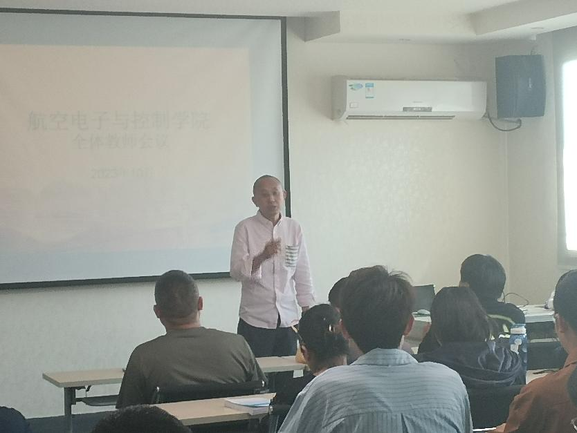 2023年10月24日星期二下午14:30—16:00,在本部五楼培训二室,航空电子与控制学院召开全体教师大会。院长蒋天合,副院长刘光军,及航电全体专职教师参加。