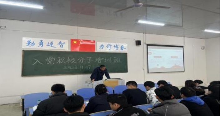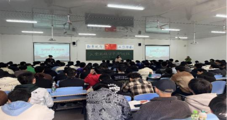 为切实加强入党积极分子的培养教育和考察,端正其入党动机,坚定理想信念,把好党员发展的“质量关”。2023年11月17日,航空制造学院党支部于经开校区9-114教室举行党积极分子培训班,此次培训班通过集中授课、专题讨论和结业考试等方式进行。本次培训由航空制造学院党支部副书记刘斯涵主持。