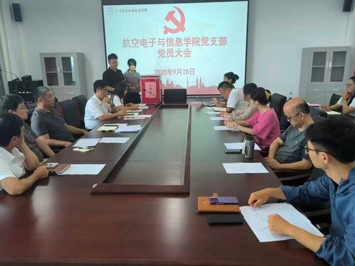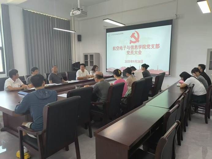 2025年9月28日下午14:00,航空电子与信息学院党支部于航信楼512开展党员大会,本次大会由彭雪同志主持,共计15名党员参会、院长李利列席。