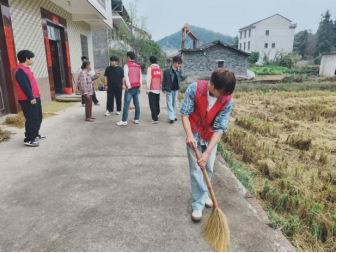 2025年11月1日下午14:30,志愿者们准时到达集合地点。认真听从负责人进行有序分组并分配任务,负责人迅速与村书记进行对接,随后,以小组为单位开启了志愿服务。第一组志愿者负责帮助老人清扫庭院。一部分志愿者走进村民家中,拿起扫帚、簸箕,细致清扫院落与室内卫生,还主动帮村民整理晾晒的农作物,让小院整洁有序;一部分志愿者俯身仔细检查设施状况,调整井盖位置,保障村民出行与排水安全;还有一部分志愿者在乡间小道,手持工具清理路边杂草、捡拾垃圾,美化乡村环境。