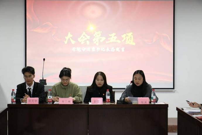 分团委副书记宗天宇代表上一届委员会作年度工作报告。他全面回顾并总结了过去一年分团委在思想引领、组织建设、校园文化、社会实践等方面取得的丰硕成果,衷心感谢学院党组织的指导与全体团员干部的辛勤付出,为新一届委员会的工作奠定了坚实基础。