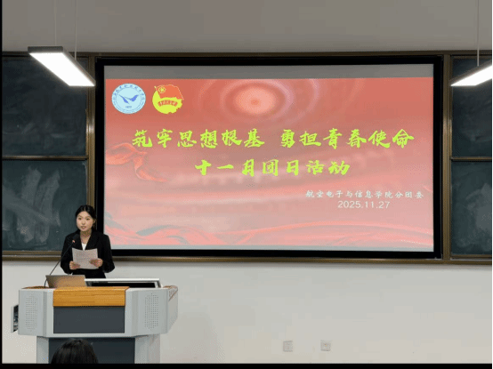 为强化青年团员的思想政治引领,激励广大团员将个人奋斗自觉融入国家发展大局,2025年11月27日,航空电子与信息学院在二号公教楼109教室成功举办“筑牢思想根基,勇担青春使命”主题团日活动。院分团委学生代表及全体支部团员共同参与了这场富有教育意义的活动。