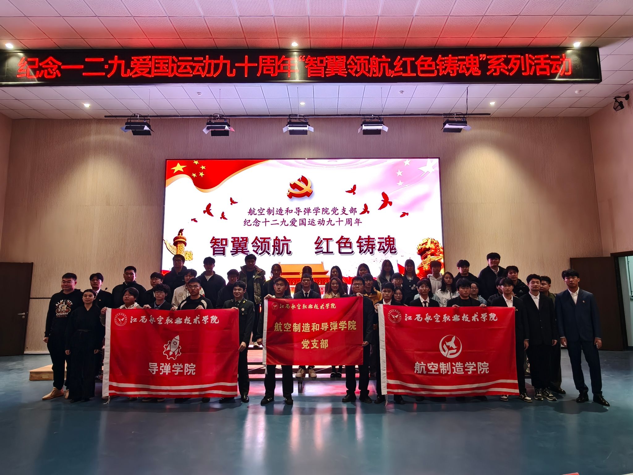 九十年前,北平学子在中华民族危亡之际挺身而出,发起了轰轰烈烈的“一二·九”抗日爱国运动。这场在中国共产党领导下的爱国运动,深刻揭露了日本吞并华北的阴谋,有力打击了国民党政府的妥协退让政策,极大唤醒了全民族的抗战意识,标志着中国人民抗日救亡民主运动新高潮的到来,毛泽东同志曾深刻阐明其对全民族抗战的重要意义。作为培养航空航天与国防军工人才的核心阵地,学院以此次活动为载体深化爱国主义教育,引导师生赓续红色血脉,勇担时代使命。
