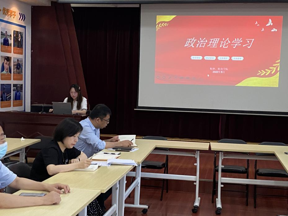 2023年5月16日下午2:30,航制学院和机电学院在科苑楼2楼开展本学期第5次政治学习会议,全体教职工参会,会议由校长助理、航制学院院长陈国俊主持。