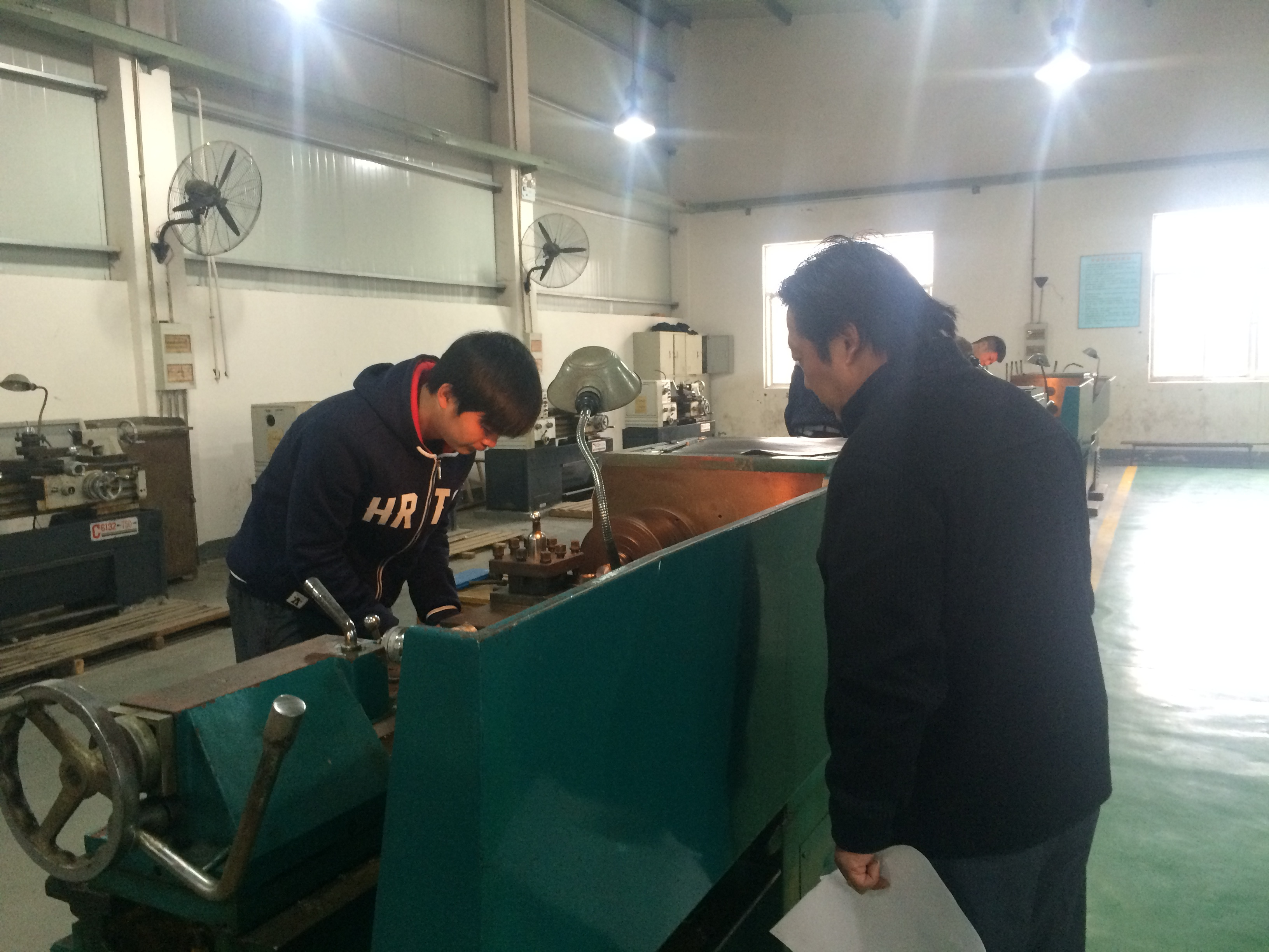 实操考试考核的是各位学生的动手操作能力,通过学生上个学期在金工实习时所学的部分内容来检验同学们的动手能力。实操考试主要包括铣工测试与车工测试。在铣工车间里,罗老师安排学生进行铣工操作。在同学们操作的同时,罗老师也对各个学生进行突击提问:“机床横向的转动速度是多少?”、“‘三刀法’是怎么操作的?”等等诸如此类的问题来检验同学们对铣工的掌握程度。相对于铣工车间的热闹,车工车间安静了许多,万老师采取的方法是:让每位学生自己选择材料、刀具,然后提出工件图纸的要求,在二十分钟的操作时间完成装刀,调刀,加工的步骤,同学们都有条不紊的进行着考核。最后一项是面试,主要考核同学们对飞机维修职业的兴趣和能够承受的竞争压力等,我系系主任徐剑锋和我系团委总支书黄芬娜担任面试官,每位同学首先做一个简短的自我介绍,然后认真细致的解答由面试官提出的各种问题。其中不乏“你为什么会参加飞机维修培训选拔赛?”、“你对自己的未来职业有规划吗?”、“你是否愿意参加培训,周六周日不休息呢?”等问题。
