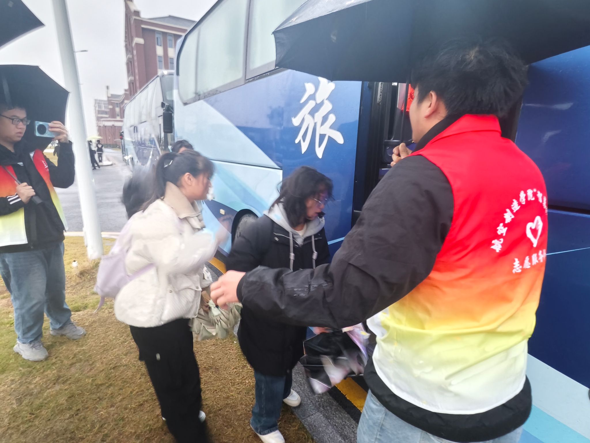 贴心服务,融入专业素养。志愿者们提前到达车辆停靠点位,提前半小时在岗布置服务站点,备好应急文具、温水等物资。现场通过志愿者引导、有序签到等方式组织考生登车,秉持航空制造专业严谨细致的作风,志愿者逐一核对考生身份信息与乘车凭证,同步提醒大家携带准考证、身份证等考试用品,对未及时到岗的考生进行电话联络,确保全员顺利乘车。