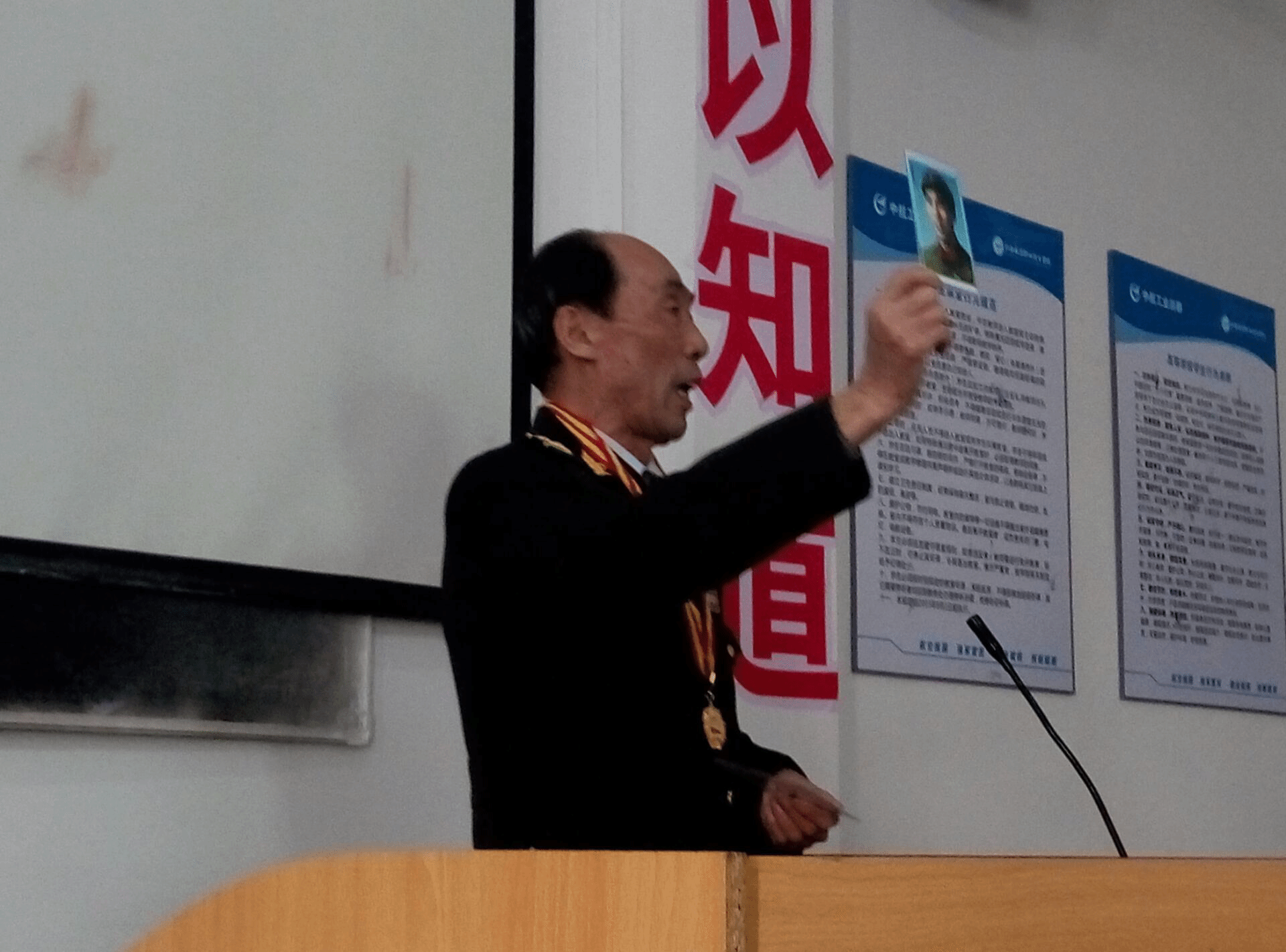 2016年3月19号上午八点,在教学楼C2-1。很荣幸我系邀请到了退休军人刘圣岩老同志为我系大一大二士官班的同学们进行以“中国军人风采”为主题的教育讲座。出席本次讲座的有:航空系主任徐剑锋老师、航空系团总支书记黄芬娜老师、航空系团总支副书记吴剑及大一大二士官班所有同学。