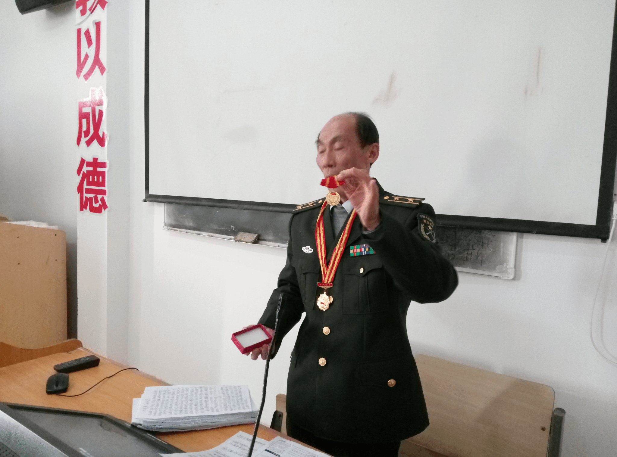 刘圣岩老同志在讲解自己所获得的荣誉时,拿出了一枚枚奖章展示给士官班的同学们观看。台下的同学们心情十分的激动与好奇,看的出来同学们都十分期盼往后的军旅生涯,同样也希望自己也能和刘圣岩老同志一样做一名优秀的军人。