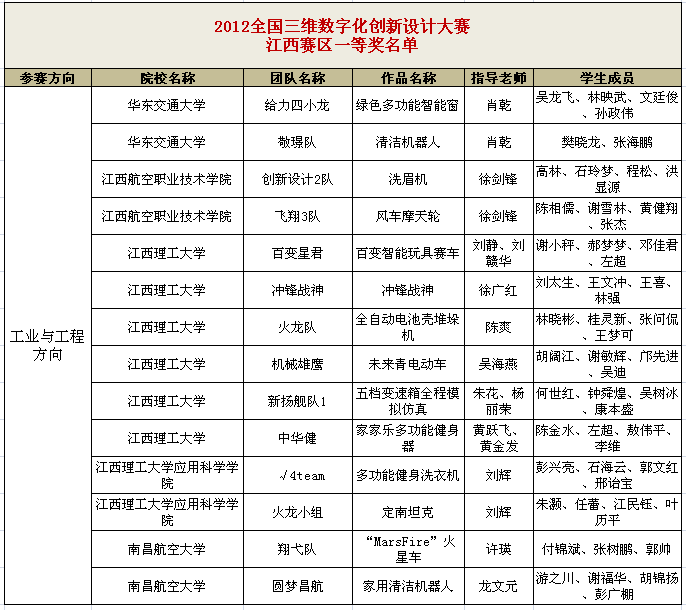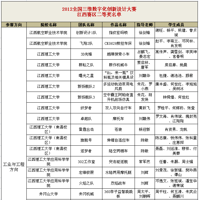 江西赛区工业与工程组方向奖项如下: