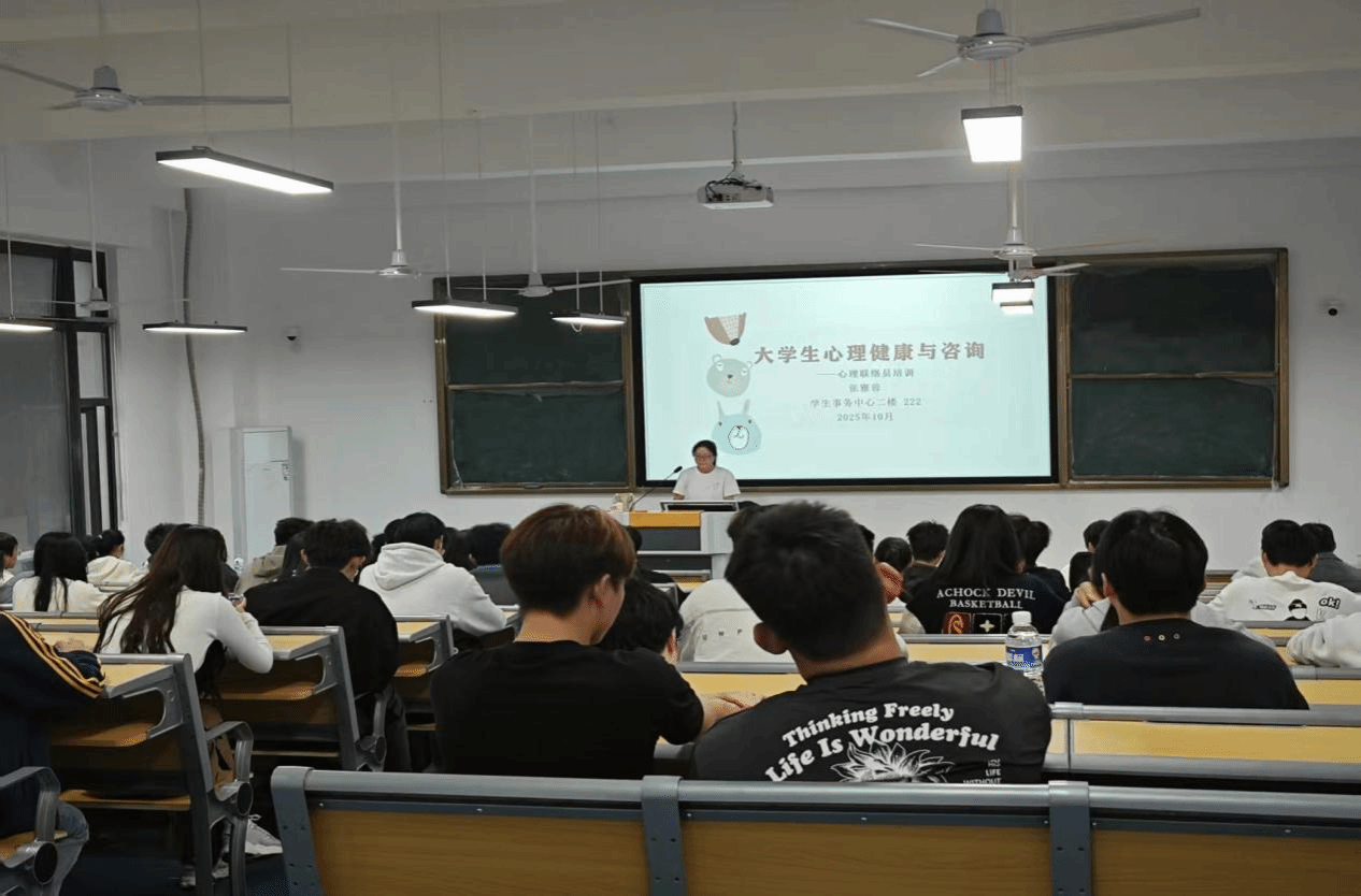 为帮助大学生正确认识心理健康问题,掌握基础心理调适方法,营造“关注心理、关爱自我、关爱他人”的校园氛围,2025年10月29日17:00-19:00,我校心理健康教育与咨询中心于抚州校区3号公教楼112教室开展25级心理委员专题培训,由校心理老师张雅蓉主讲,共有93名心委参与。