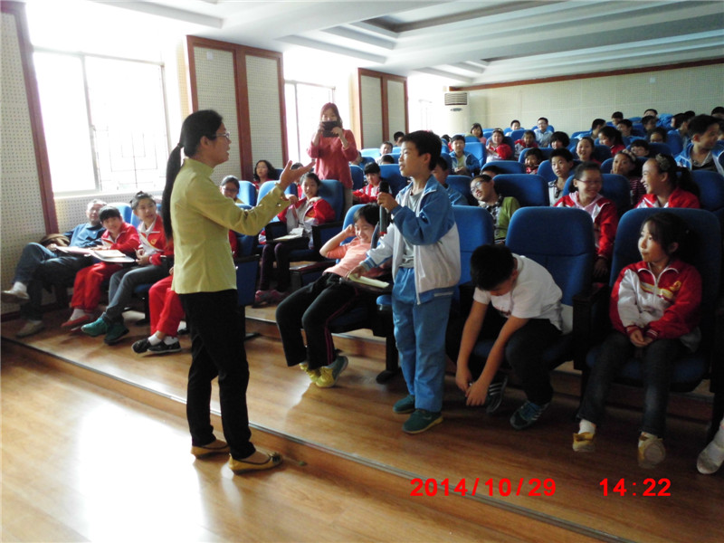 本次讲座的主题是《家,温馨的港湾――学会如何与父母沟通》。针对小学生的特点,吴老师首先设计了一个热身活动“交往纤纤指”,男孩女孩分两批做这个游戏,同学们参与热情很高。活动后同学们分享了自己的感想,让大家了解交往的交互原则,运用到亲子关系中,也是非常恰当的。现场调查在座学生与家长的沟通是否满意,肯定回答者比否定回答者人数明显占优势,说明大部分孩子与家长的沟通还是正向的。通过播放视频“人的一生”,让同学们领悟到时间易逝,亲情宝贵。