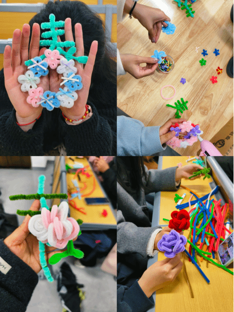 经过近一个半小时的创作,一件件充满巧思的春日主题作品纷纷呈现。有色彩鲜艳的扭扭棒花束、栩栩如生的春日小动物,还有融合春天元素的创意场景摆件,每一件作品都寄托着同学们对春日的美好期许。活动尾声,心理社组织了作品展示与分享环节,同学们踊跃讲述自己的创作灵感与故事,现场掌声连连。