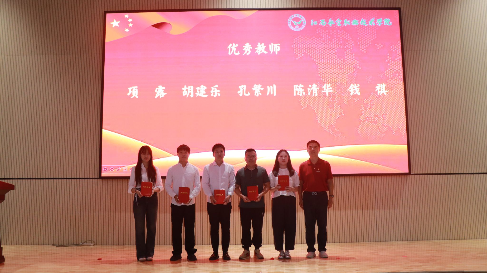 在欢快的乐曲声中,校领导为受表彰的教师颁发荣誉证书。现场掌声不断,气氛热烈隆重。