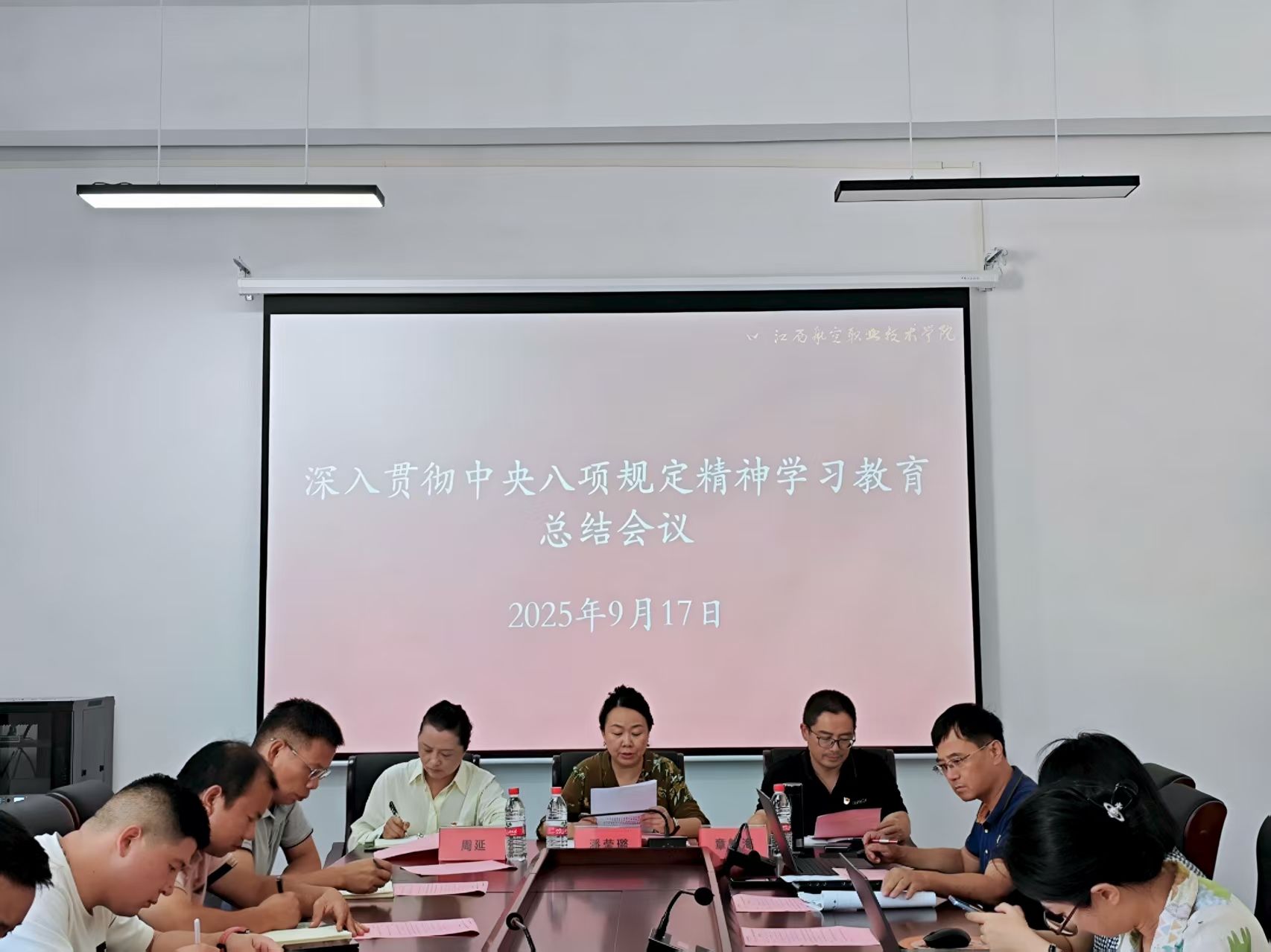 9月17日上午,江西航空职业技术学院召开深入贯彻中央八项规定精神学习教育总结会议。学校党委书记(督导专员)潘莹璐,党委委员、执行校长周延等党委班子成员出席会议,各党支部书记、副书记等相关负责同志列席会议。会议由党委书记(督导专员)潘莹璐主持并作总结讲话。