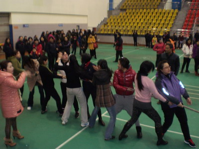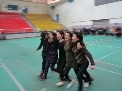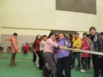 踊跃报名参加趣味运动会的女教职工达20多名,占全体女工总数的三分之一,在备赛的时间里,由于天气一直下雨,而且很多老师都在昌南校区上课,每天下午五点才能乘校车返回洪都,报名的教职工自发地在结束教学工作后,冒雨到学校的校本部集合,利用业余时间在大厅里刻苦练习,优胜劣汰进行参赛选手的最终选拔,分别成立了拔河跳绳和齐心协力的三个队伍。同时盛情邀请男同胞指导和陪练。趣味运动会的参与增强了全体职工的凝聚力和战斗力,在现场的助威呐喊加油声中。顽强拼搏的精神力助我院女职工获得拔河的第七名佳绩。