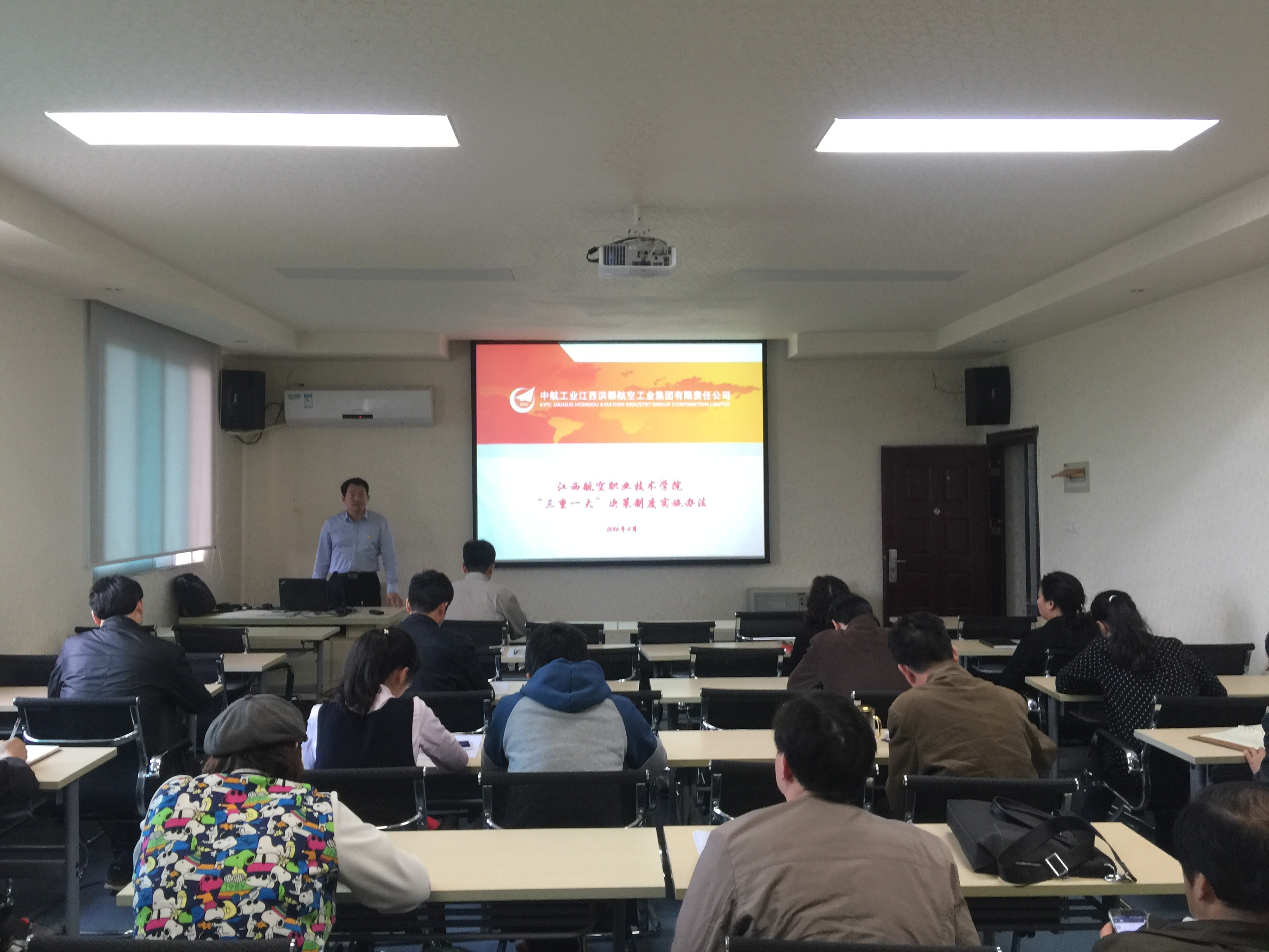 4月12日下午,学校如期召开了四月份干部职工联席会。会议由党委书记秦昶主持,熊宝珍副院长向参会人员介绍了洪都公司、学校三月份经营情况及亮点工作,纪委书记王雷作了“三重一大”决策制度的解析。最后,秦书记对学校下一步工作提出了明确要求。