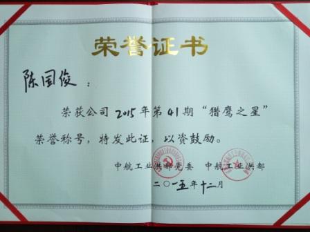 近日,培训处陈国俊老师被公司评为2015年第41期“猎鹰之星”。