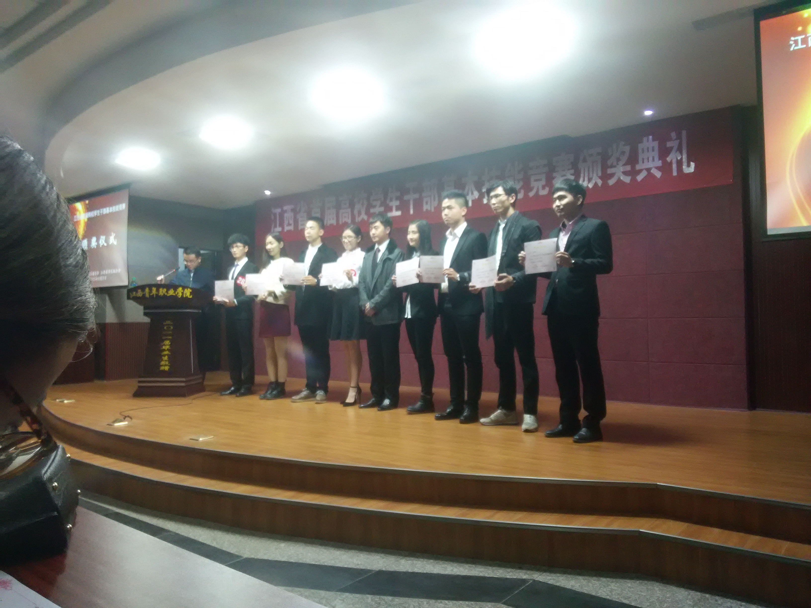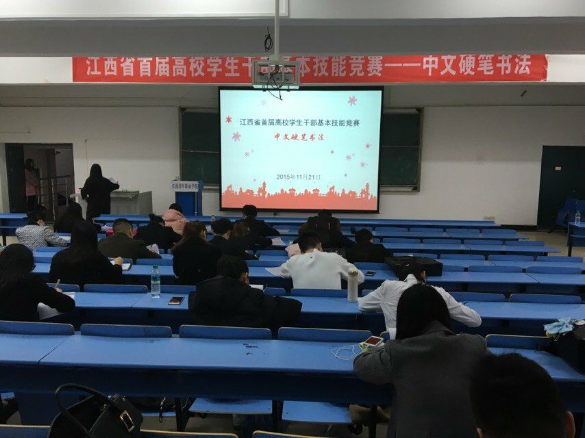 2015年11月21日,江西省首届高校学生干部基本技能竞赛在江西青年职业学院隆重举行。全省各高校学生会、研究生会现任主席团成员参与了此次竞赛。本次竞赛以“秀基本技能,展学干风采”为主题。设置了英文演讲、中文硬笔书法、PPT 制作、案例分析4个项目,分别占总成绩的 20%、20%、30%、30%,均为现场抽取题目即兴发挥。