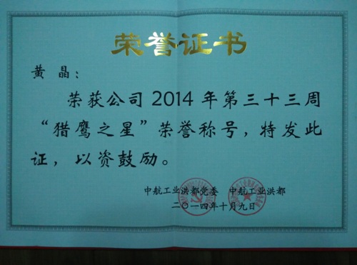 “猎鹰之星”是2006年中航工业洪都高教机“猎鹰”首飞成功后,为了响应中航工业总经理林左鸣希望把“猎鹰”打造成中国又一型名机的愿景,为了形成打造名机的洪都“星文化”,洪都组织的一项评选表彰活动,目的用基层明星员工的事迹感染和带动全体员工。