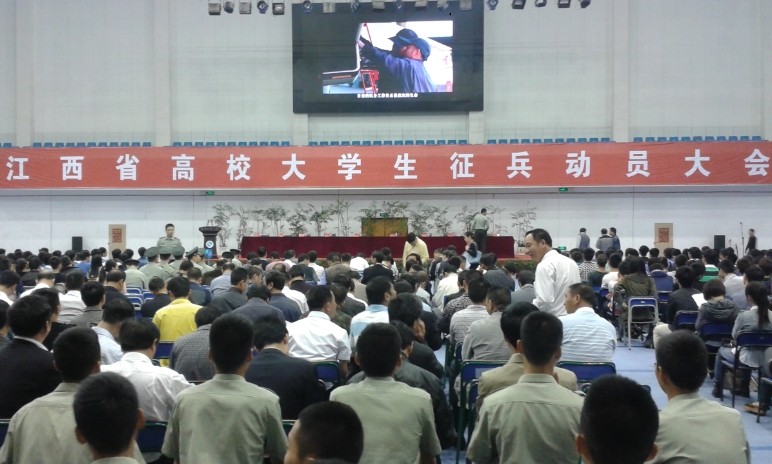 5月9日上午,在南昌工程学院体育馆、图书馆报告厅分别召开了江西省高校大学生征兵动员大会及江西省高校兵役工作会议。总参动员部田义祥副部长、张玉堂局长,省政府谭晓林秘书长,省教育厅郭奕珊副厅长,南京军区学生军训办崔本乐副主任,省军区陈平参谋长、政治部黄恩华副主任,南昌警备区夏一军政委,江西省各高校业务领导代表,全省各高校代表及省、市、县(区)征兵办公室和学生共4000余人参加动员大会。大会由省教育厅郭奕珊副厅长主持。省征兵领导小组副组长、省军区陈平参谋长在大会中讲话。他指出,高等学校在校学生积极应征入伍服兵役,是推进国防和军队现代化建设的重要举措,是我们每个公民应尽的光荣义务,也是有志青年报效祖国的有效途径。同时,他希望广大同学关注国际局势,关心祖国政治和军事形势,了解征兵政策,牢固树立保卫祖国、抵抗侵略的职责意识。