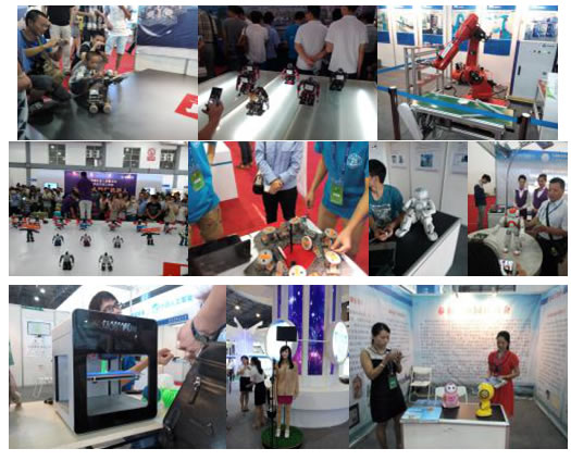 智博会现场,可爱的机器人拿出十八般武艺,人机象棋博弈、机器鱼等水中仿生机器人、机器狗等动物机器人、类人型机器人表演、照片变油画、小书童毛笔字机器人、武术擂台赛、大狗机器人、爬行机器人、工业机器人等来自全国各地的机器人凝聚了我国目前最前沿的智能机器人技术。同时,无人飞行器表演、模拟飞行体验、智能家居体验、电子商务、3D打印等众多精彩展品表演、体验和展示更是吸引了众多参观者的关注。