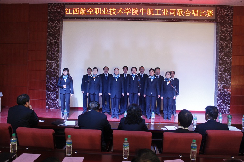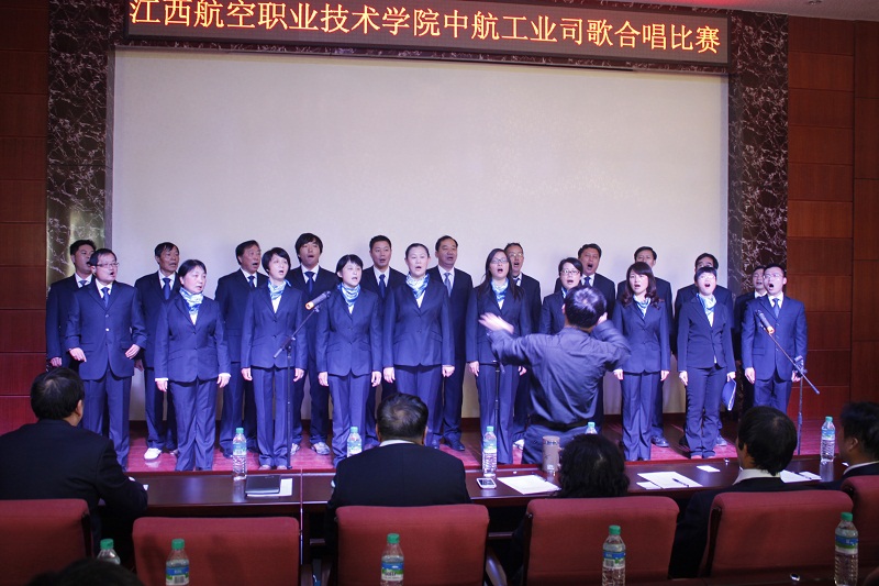 颁奖仪式上,公司、学院领导及全体教工齐声高唱司歌。精彩的司歌比赛活动在高吭的旋律中圆满结束。通过本次司歌比赛,展现了江西航空职业技术学院朝气蓬勃的精神风貌,增强了员工的凝聚力,激发了员工的自豪感和归属感,弘扬了中航工业的企业文化,再现积极向上、和谐奋进的学院精神。