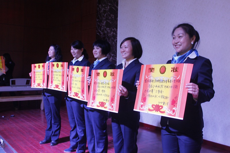 比赛过程中每支参赛队伍演唱之后,由评委现场评分。经过激烈角逐,学工招就代表队和财务后勤保卫代表队以优美的旋律、音准准确、演唱形式丰富脱颖而出,获得比赛的一等奖;院办、基础课部、党校培训代表队以整齐的歌声、昂扬的士气获得二等奖,其余5支代表队获三等奖。