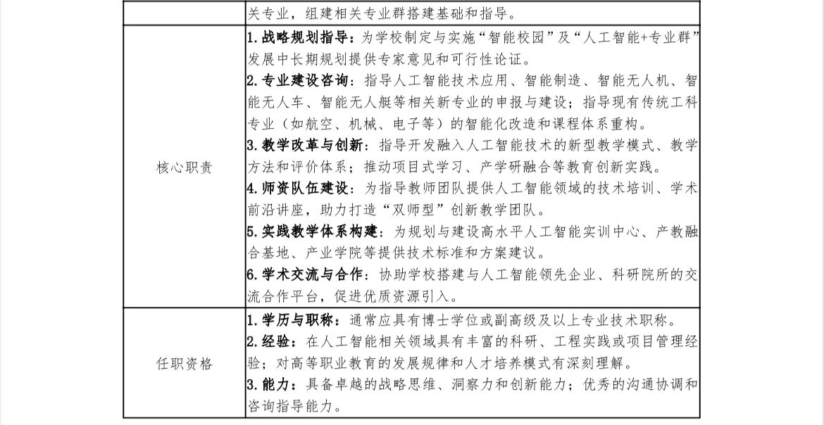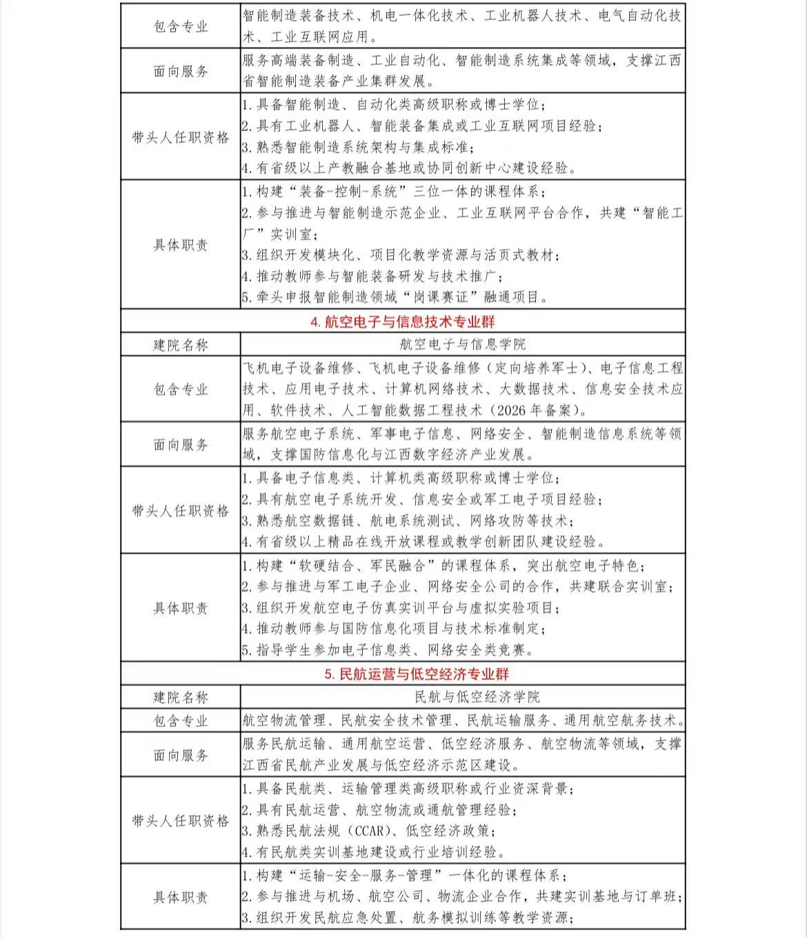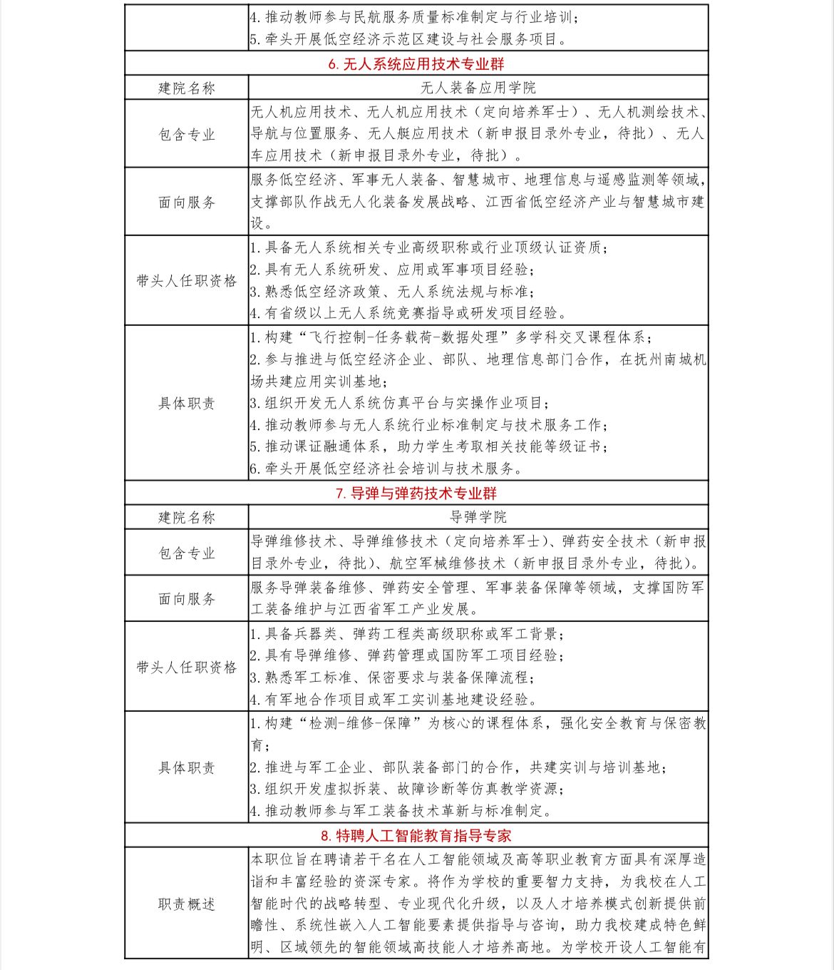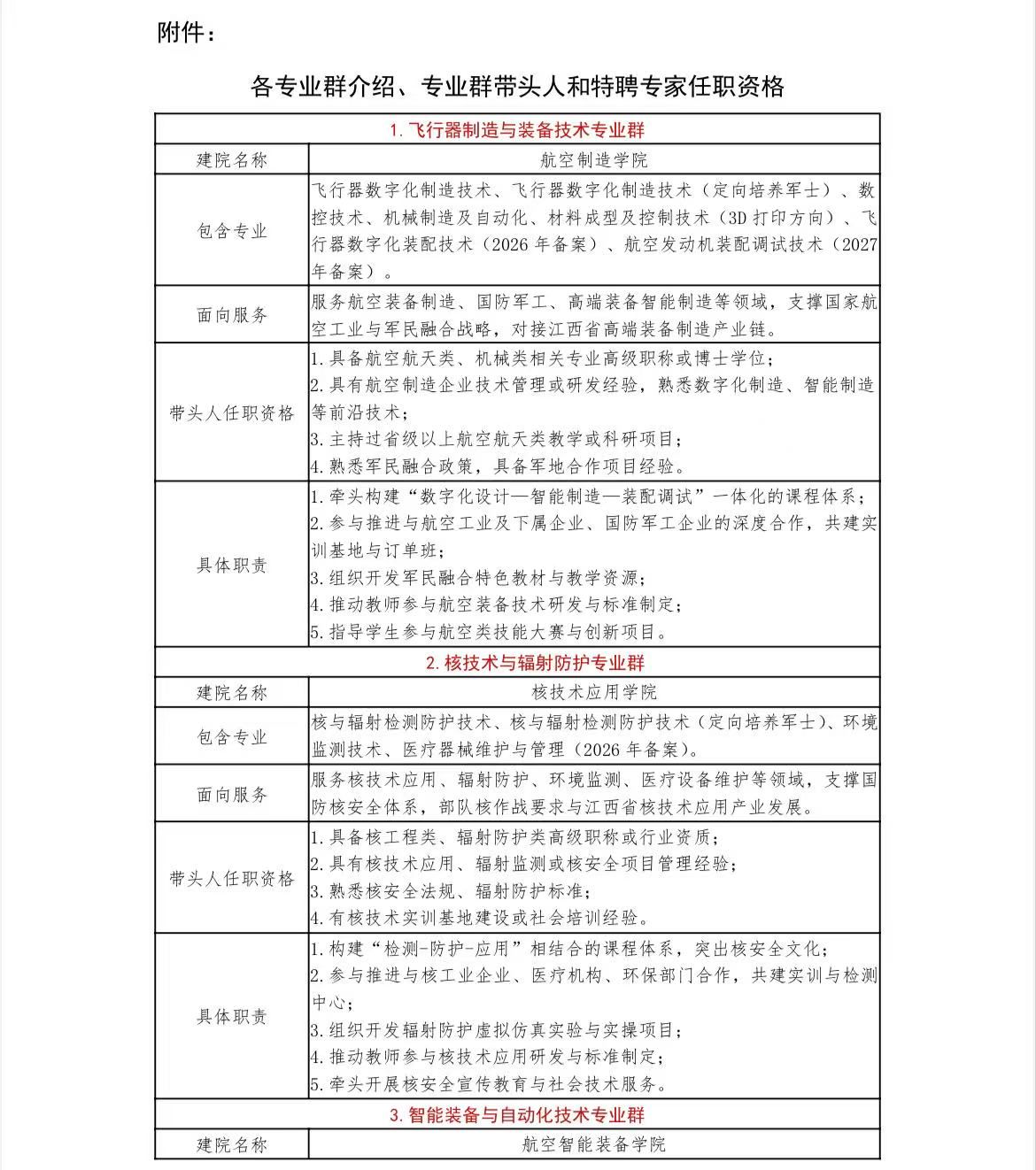 专业群介绍、专业群带头人、特聘专家具体职责和任职资格详见附件。