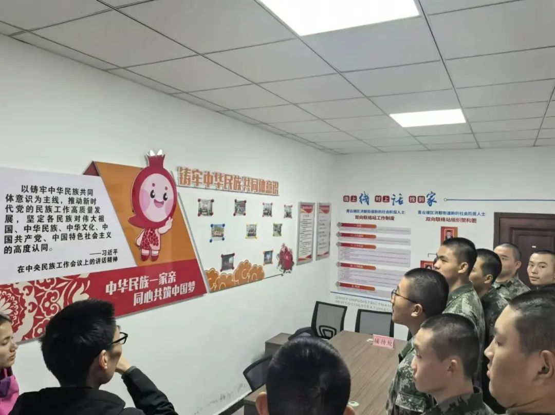 课程结束后,在社区工作人员的悉心引领下,同学们有序参观了“洪石榴”民族团结展示馆宣传墙,该展示墙生动展现了洪西社区在推进多民族和谐共融中所采取的一系列创新举措以及在此过程中所取得的显著成果。洪西社区辖区现居住有12户少数民族家庭。