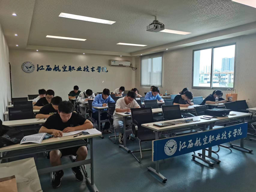6月16日上午,洪都商飞组织理论知识考试,在我校东校区三号楼102、103、104教室与一号楼5楼培训一室、培训二室举办,共有110名学生参加笔试;洪都商飞党委书记胡育青、人力资源部部长胡国明,我校校长宋利康、副校长仇岳猛前往考场查看考试情况。考试结束后,学生有序离场,经过企业批改试卷、统计分数,共有50名学生顺利进入面试答辩环节。