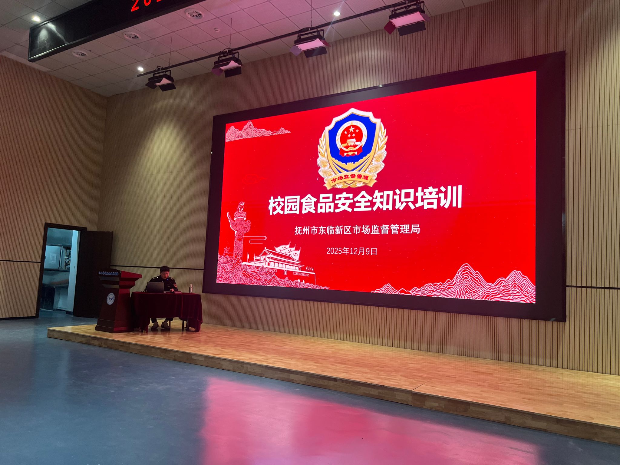 为全方位强化校园食品安全管理工作,进一步夯实后勤保障责任,12月9日下午14时,我校后勤处携手抚州市东临新区市场监督管理局,共同举办了“2025年校园食品安全专题讲座”。东临新区市场监督管理局局长杨勇亲临现场指导并发表致辞。