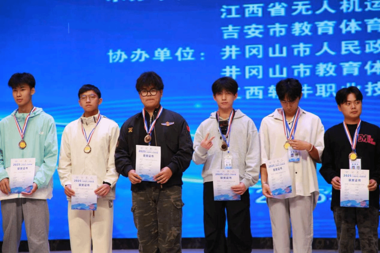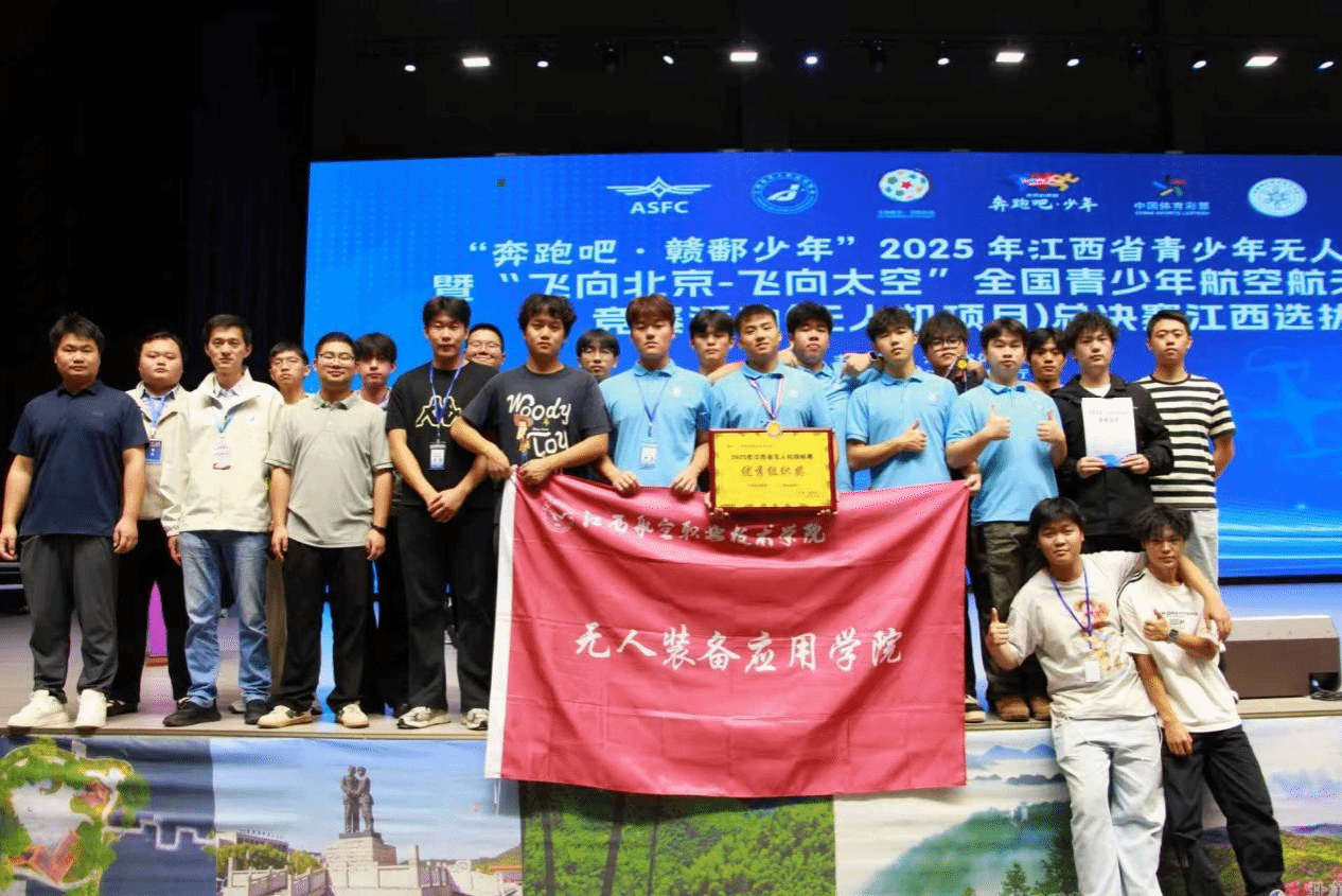 2025年10月17日由江西省教育厅、江西省体育局主办的“奔跑吧.赣鄱少年”2025年江西省青少年无人机锦标赛暨“飞向北京,飞向太空”全国青少年航空航天教育竞赛活动(无人机项目)总决赛江西选拔赛在江西软件职业技术大学(井冈山校区)落幕。无人装备应用学院王俊、程浩临、邓宇航、连子望四位老师带领我校18名同学参赛。