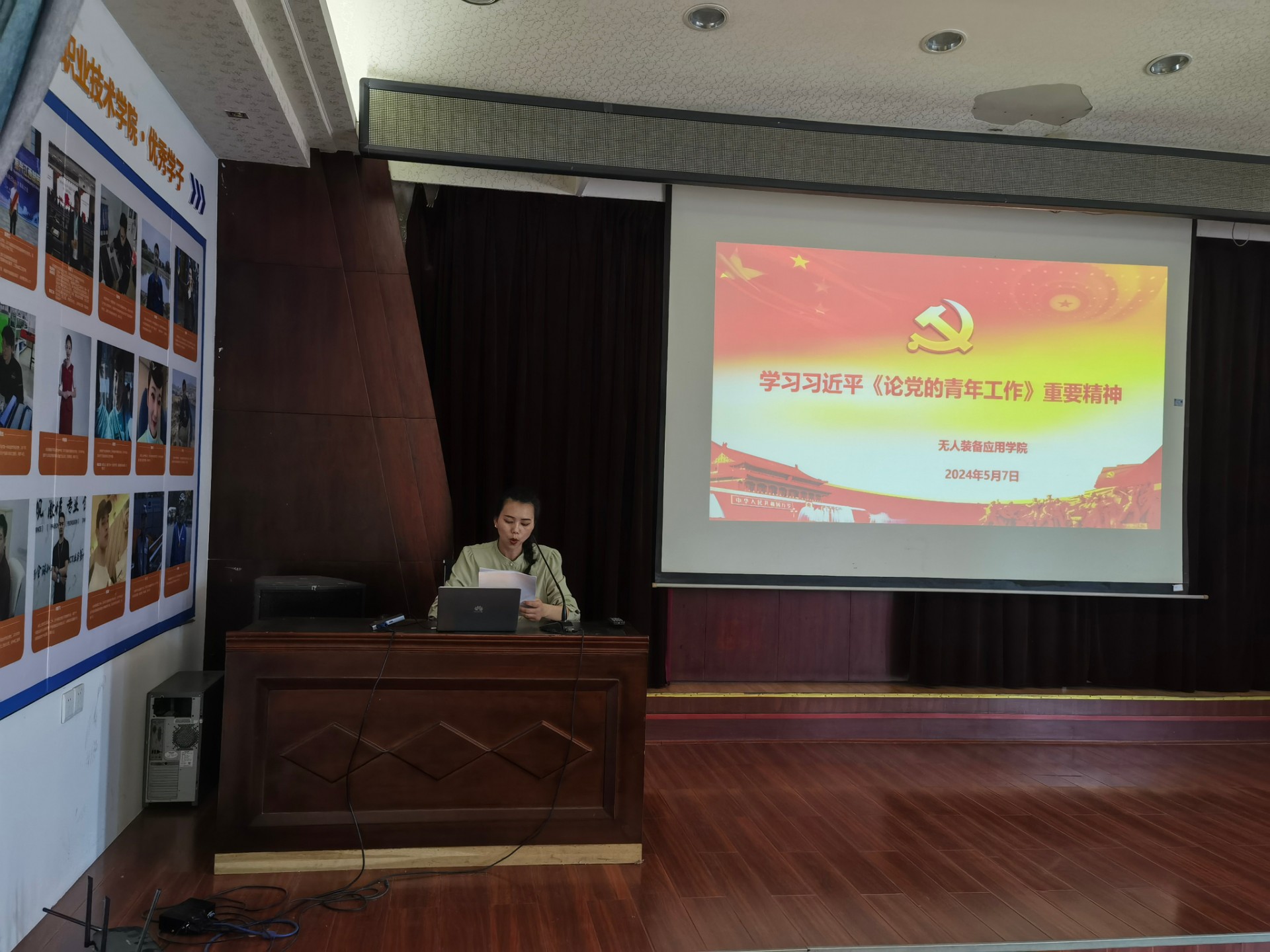 2024年5月7日下午14:00—16:00本部科苑楼二楼无人装备应用学院全体教职工深入学习贯彻习近平总书记《论党的青年工作》之职业教育精神指示。王志勇院长、王晔冰副院长均出席本次会议,范小芳院助带我们学习了习近平总书记的重要讲话。...