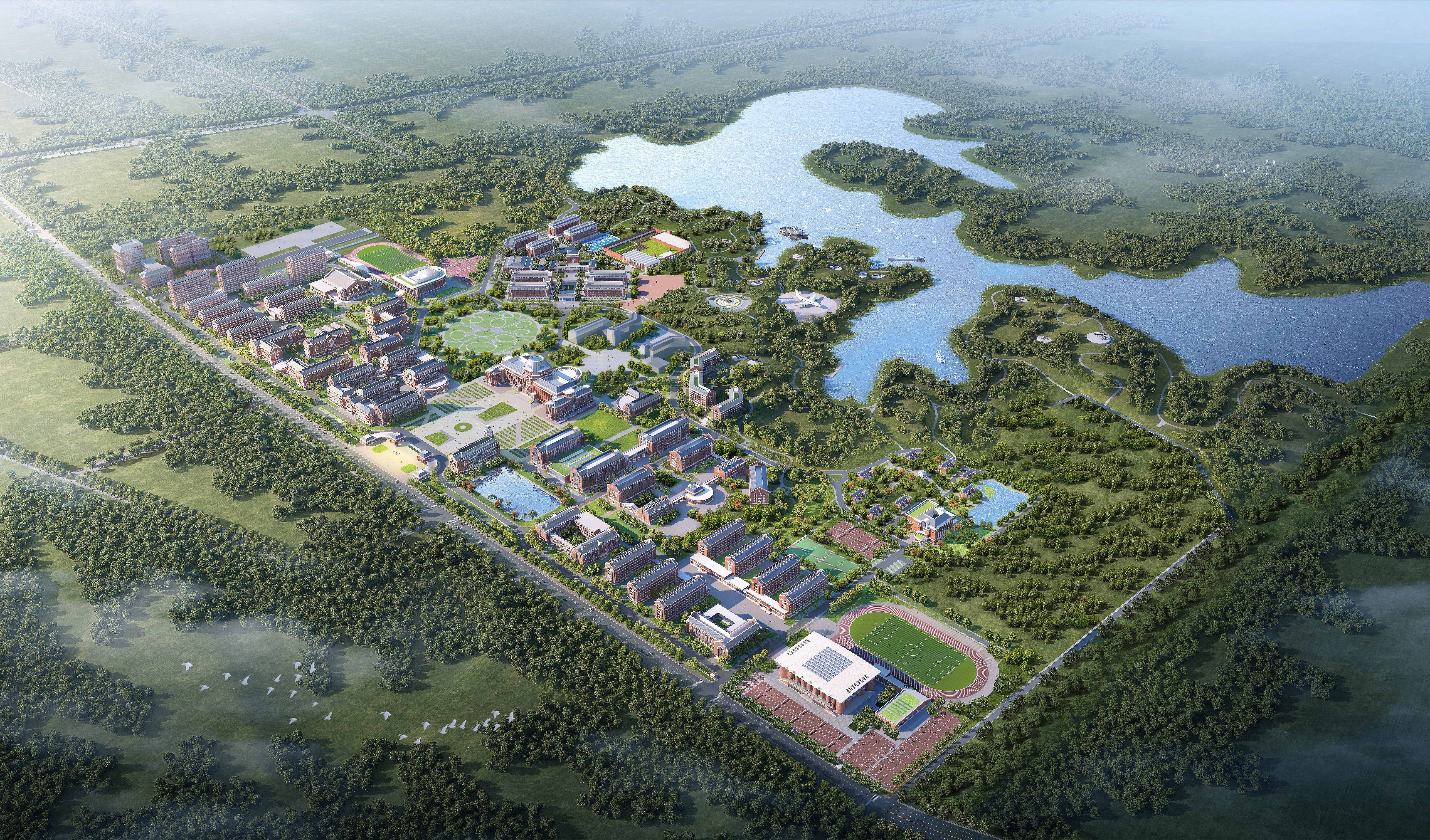 江西航空职业技术学院抚州校区位于抚州市东临新区,总占地面积1306.2亩,总建筑面积约62万平方米,总投资约26亿元。目前已建成 400 米无人机跑道和航站楼并与政府共建低空经济科创园,拥有低空(300 米以下)教学空域。项目建设纳入江西省“十四五”高等学校设置规划,是江西省重点工程项目。项目于2023年2月正式开工建设,已取得全部1306.2亩土地,已建成交付41万余平方米校舍,涵盖学生宿舍、公共教学楼、学院楼、食堂、图书馆、行政办公楼、理实教学中心、学生事务中心、室外球场、地下室等,当前校园可容纳13000余名学生在此学习、生活,待校园全部建设完成后,可为2万名学生提供优越的生活、学习、实训条件。